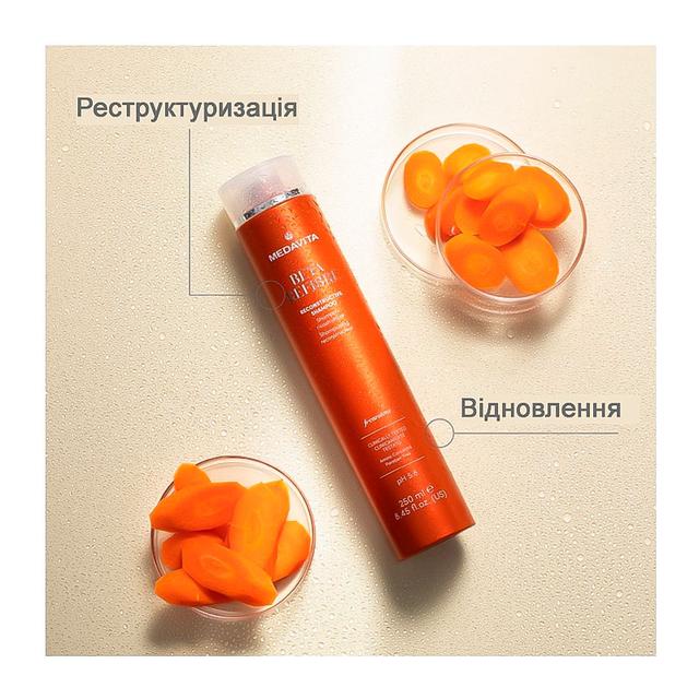 Шампунь Medavita Beta Refibre Reconstructive Shampoo – бережно очищает, увлажняет, уплотняет и предотвращает повреждения. Обогащенный аминокислотами шампунь обеспечивает длительный эффект восстановления. Благодаря бета-каротину средство защищает волосы от повреждений, вызванных как физиологическими процессами (обезвоживание и старение), так и химическими агентами или факторами окружающей среды.