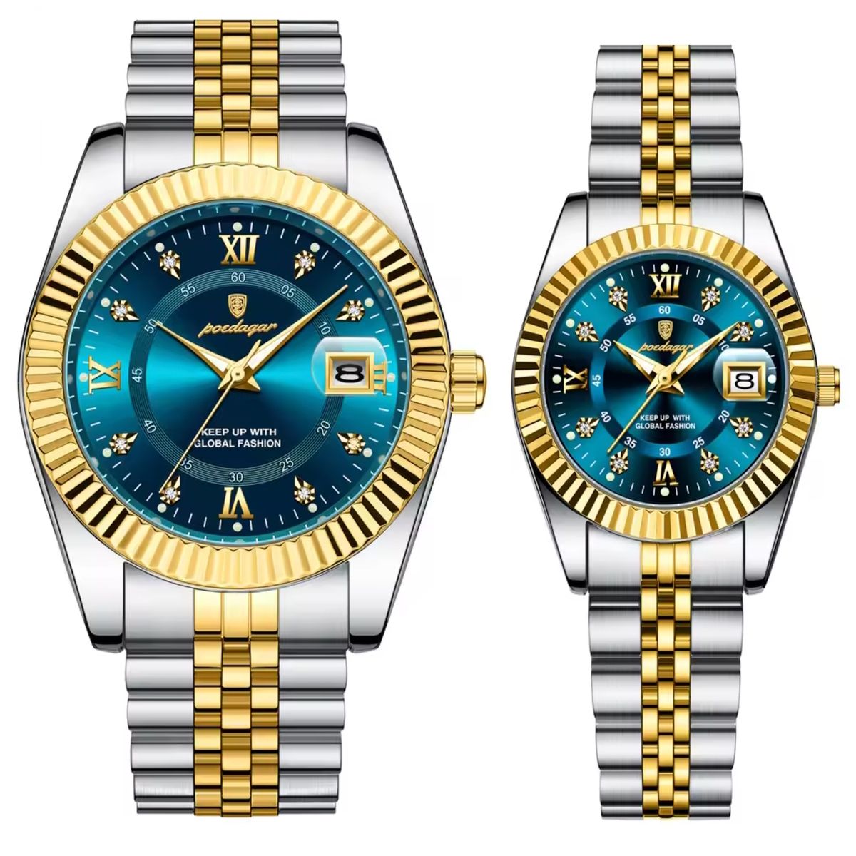 Poedagar Dublin Couple - парная модель часов предназначена для влюбленных половинок и хороших друзей.В комплекте идет: 2 часов (мужские и женские), а также подарочная коробочка.Такой набор станет идеальным подарком для вашего близкого человека.Poedagar – это сочетание элегантности, точности и современного стиля. Часы этого бренда предназначены для тех, кто ценит утонченность в деталях и стремится подчеркнуть свою индивидуальность.Каждая модель Poedagar – это:Качественные материалы: нержавеющая сталь, крепкое минеральное стекло, надежные кварцевые механизмы.Стильный дизайн: от классических решений до современных спортивных форм.Функциональность: водозащита, индикатор даты, светоотражающие стрелки и другие полезные функции.Poedagar – это идеальный выбор для деловых встреч, повседневного стиля или особых событий. Это не просто часы – это выражение вашего вкуса, уверенности и стиля.В комплекте идет официальная гарантия на 12 месяцев и подарочная коробочка.