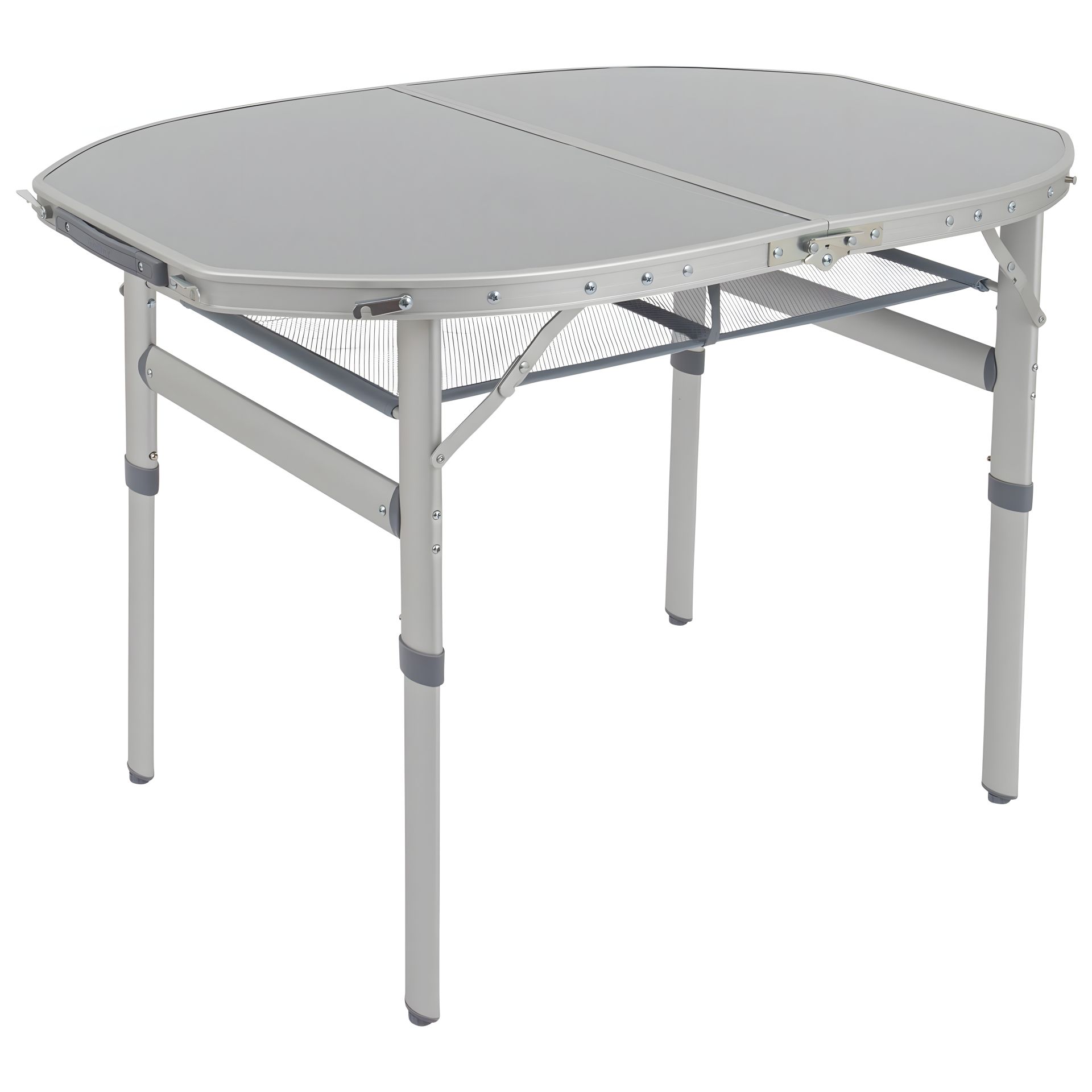 Среднеразмерный стол с термо- и влагостойкой столешницей Bo-Camp Premium Oval 100x70 cm Grey из коллекции Industrial станет незаменимым спутником вашего отдыха в саду, на даче или на природе. Размер и форма столешницы позволяет разместить за ним от 6 до 8 человек, а сетка под столешницей поможет не загружать поверхность вещами. Корпус стола, выполненный из алюминия, он легко складывается, а разборные телескопические ножки стола регулируются по двум уровням (36/70 см). Ножки также можно отрегулировать на неровной поверхности с помощью винтов.