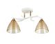 Декоративная люстра INTEREES V 5007-2 WH+FG — это потолочный светильник с двумя плафонами, предназначенный для использования в бытовых помещениях с сетью 220 В. Основание изготовлено из металла с порошковым покрытием белого цвета, с декоративными вставками в оттенке теплого золота (FG — Ferrum Gold). Плафоны выполнены из стекла, равномерно рассеивают свет.