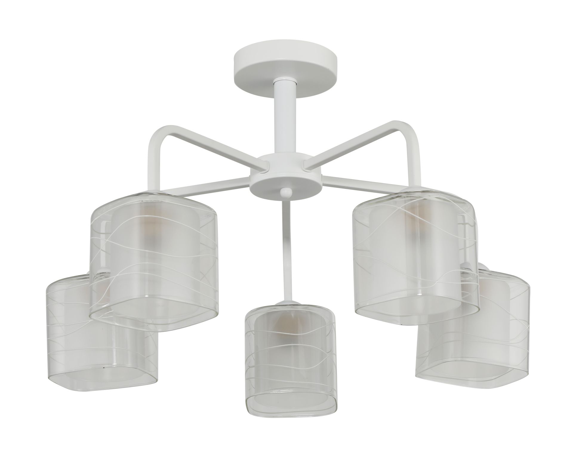 Потолочный светильник G 07469/5 белый — это сочетание элегантного дизайна и эффективного освещения. Благодаря пяти стеклянным плафонам, светильник обеспечивает яркий и равномерный свет, идеально подходящий для просторных комнат: гостиных, холлов, столовых или рабочих пространств.