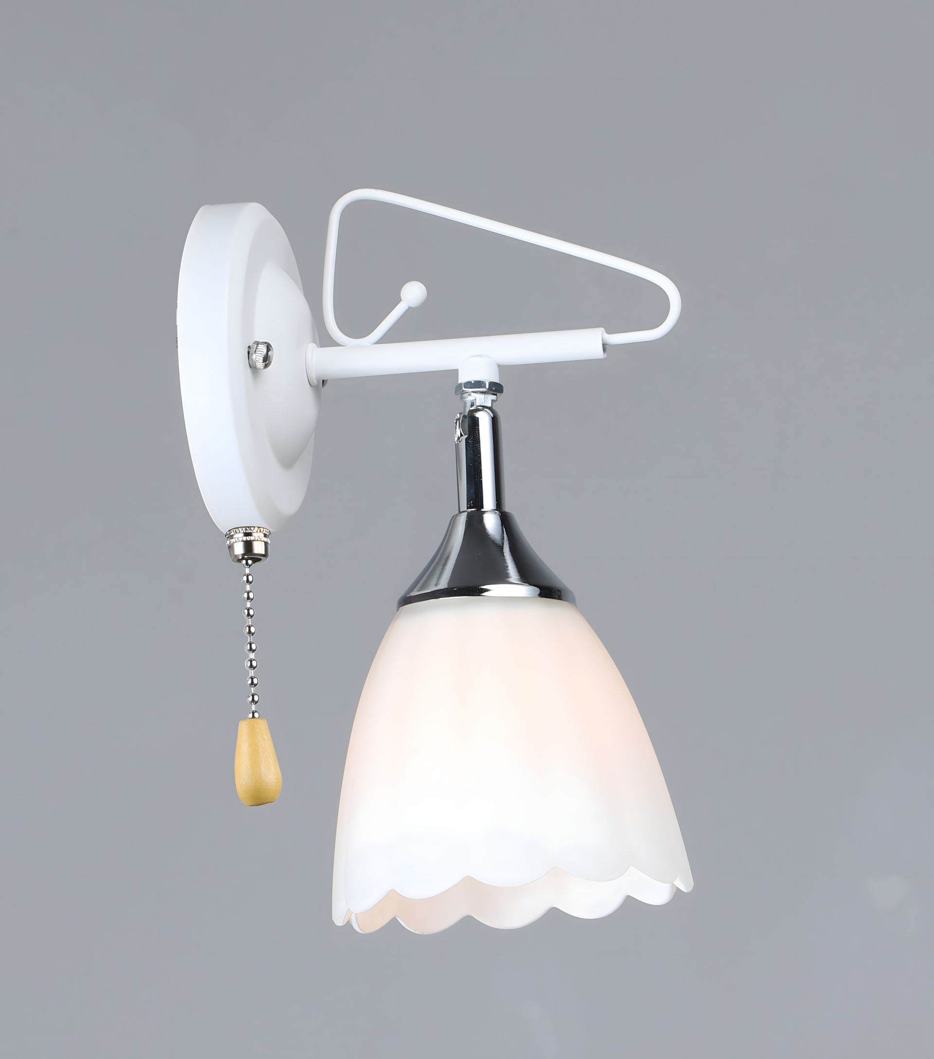 Цветовая гамма — белый с элементами хрома, что делает модель универсальной для разных интерьеров — от классики до лофта. Благодаря компактным размерам, светильник идеально подойдёт для установки возле кровати, в прихожей или ванной комнате.