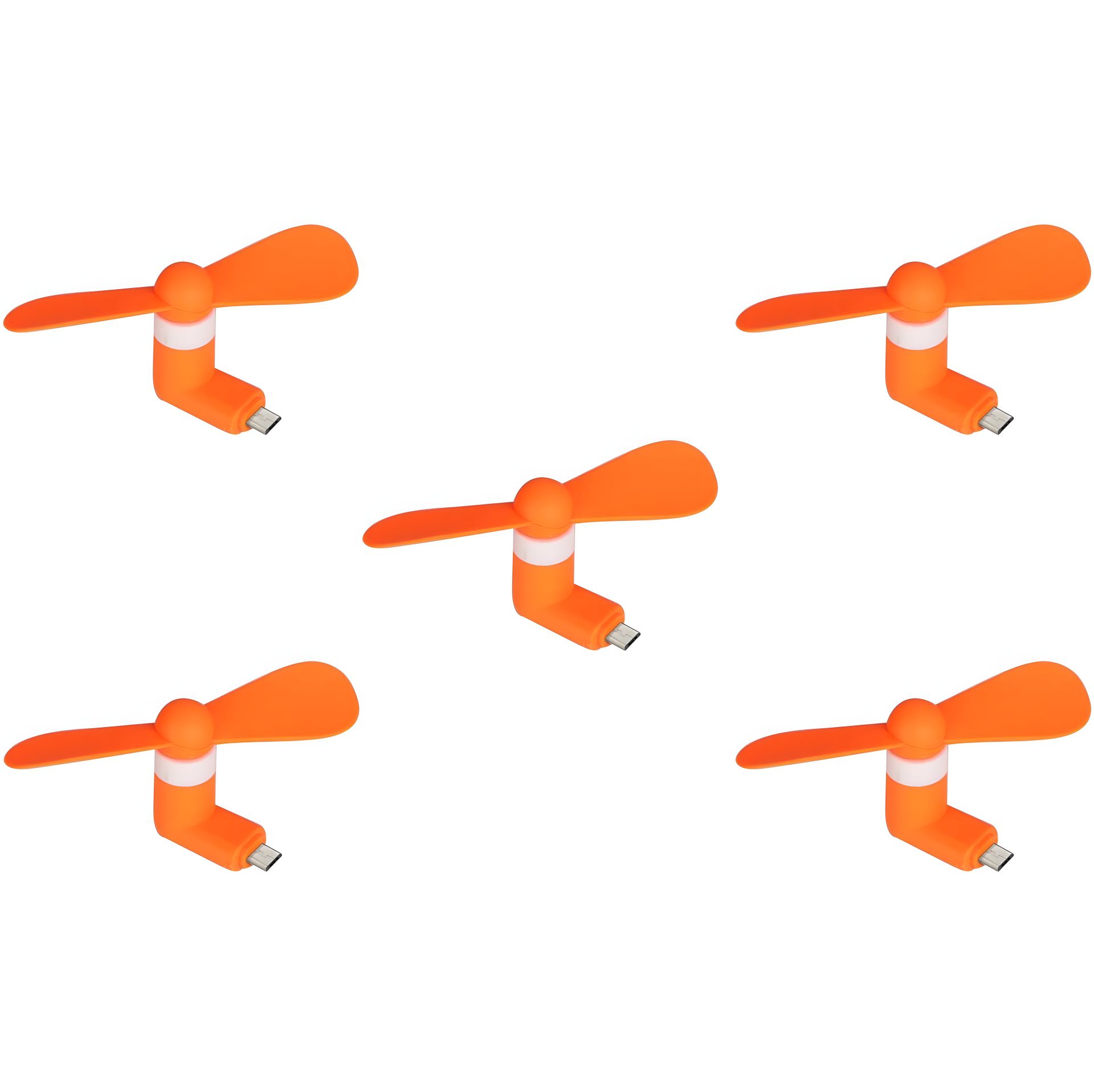 Мобильный вентилятор MicroUSB оранжевый, от телефона, повербанка, ноутбука, комплект 5шт