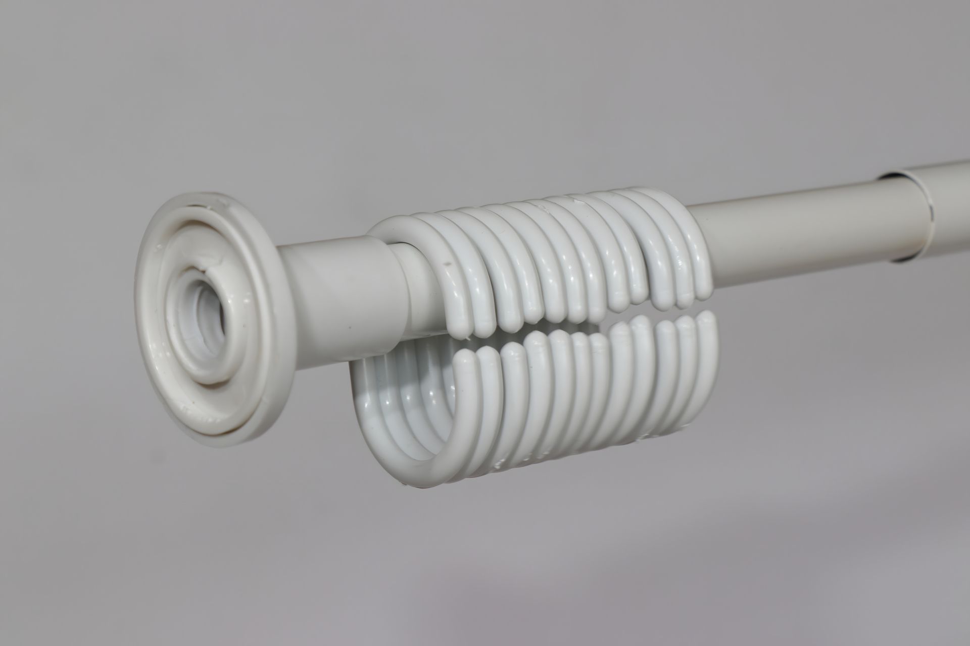 Занавес для занавеса прямой металл. На весенней основе. Это легко закреплено между стенами. Подходит для расстояний от 110 см до 200 см. Это не требует бурения стен и каких -либо дополнительных крепеж. Кольца включены. Производство индейки.