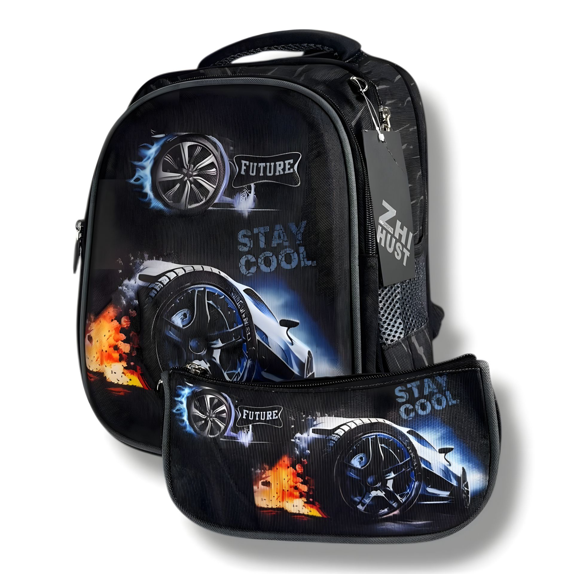 Школьный рюкзак с принтом суперкара (для мальчиков 1-4 классов, вместительный и легкий)