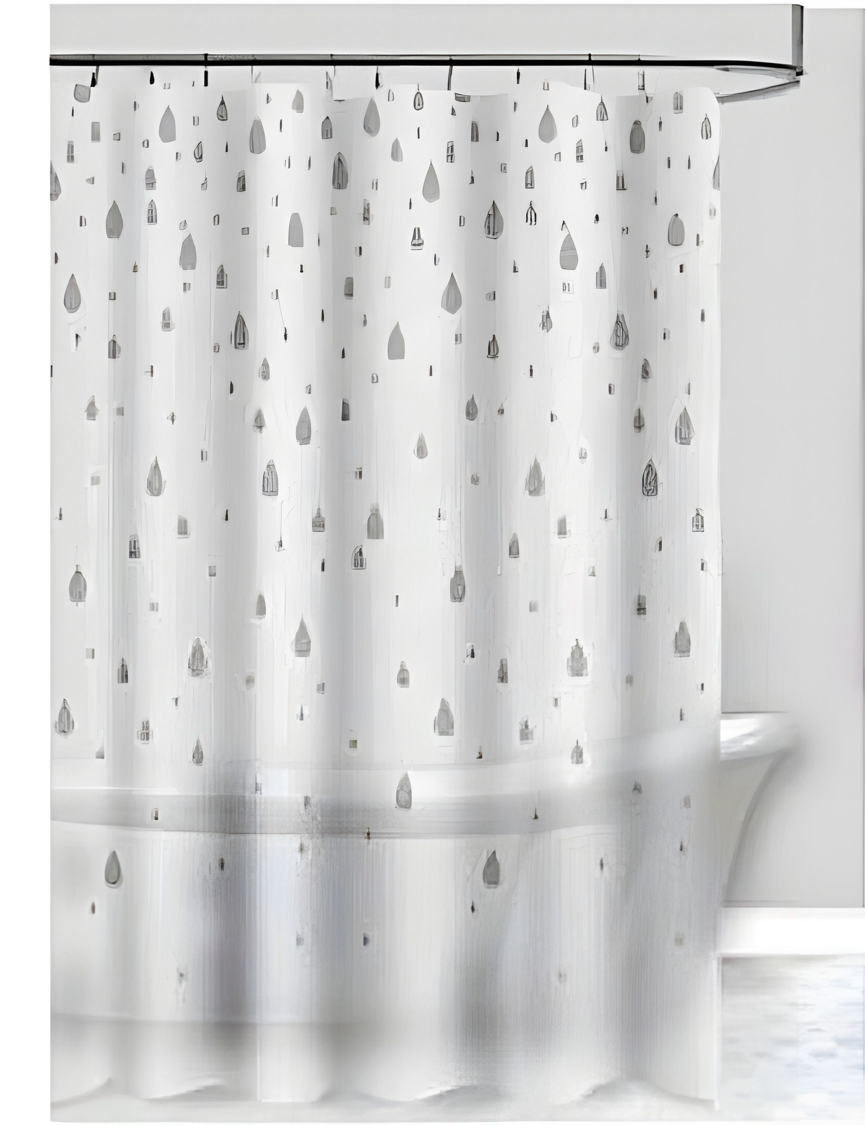 Силиконовая ванная занавес, размер 180*180 см. Водонепроницаемый, без запаха, легко ухаживать. На верхнем краю двойной изгиб с отверстиями для колец. Кольца включены.