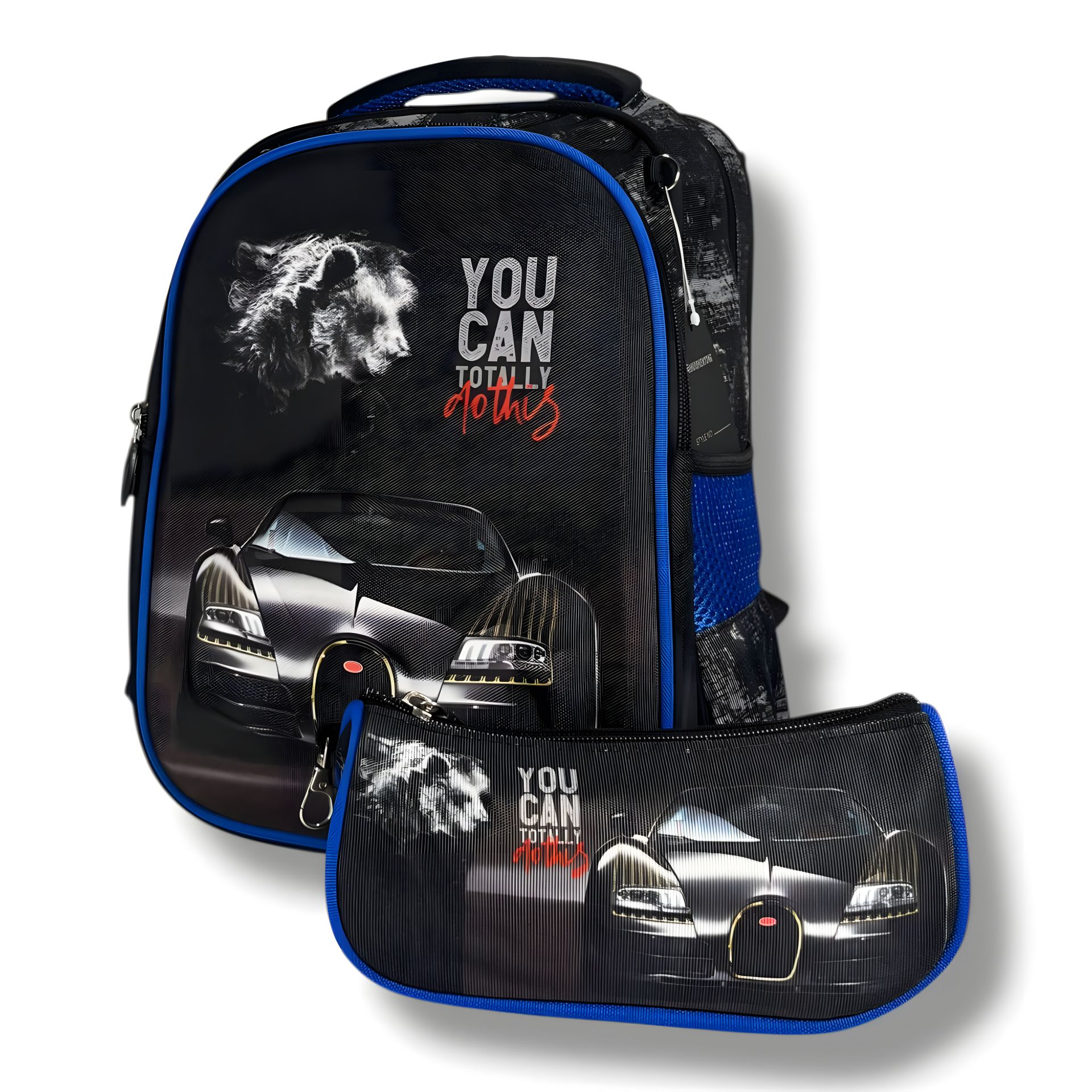 Школьный рюкзак с принтом суперкара для мальчиков 1-4 классов, вместительный и легкий, с пеналом в комплекте