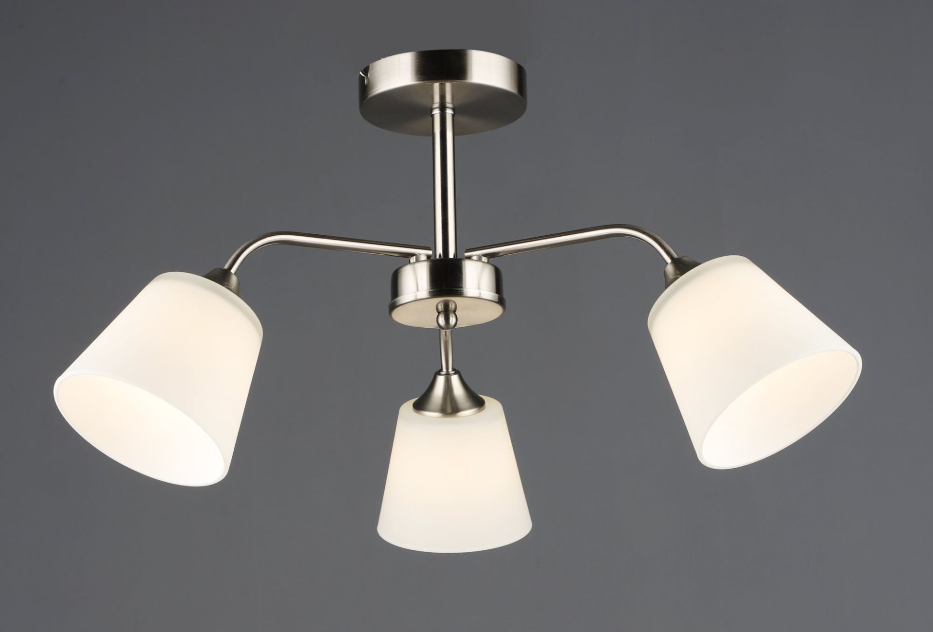 B N6599/3 SN — стильный потолочный светильник в цвете никель с тремя стеклянными плафонами. Создает мягкое и уютное освещение для любого помещения. Отлично подходит для современных интерьеров. Источник света в комплект не входит.