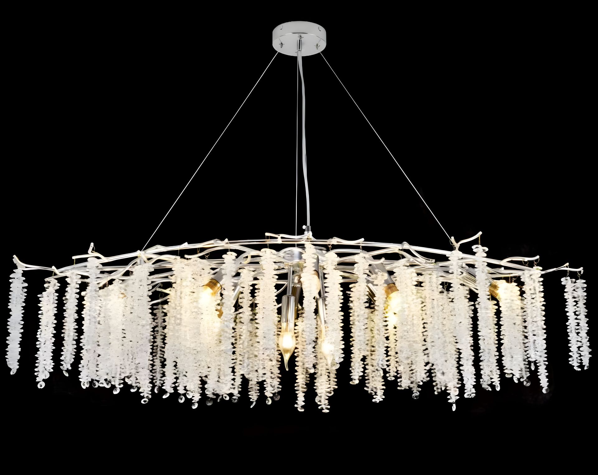Эта люстра станет эффектным акцентом в больших пространствах — гостиных, холлах, отелях или ресторанах. Высота подвеса регулируется, позволяя адаптировать модель под особенности помещения.