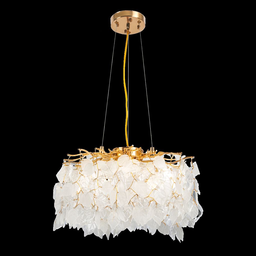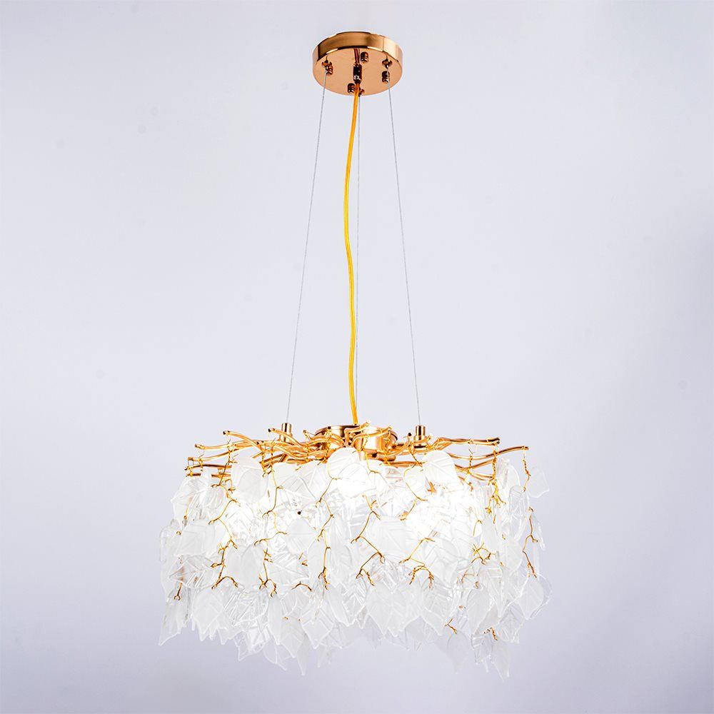 Это идеальное решение для тех, кто ценит современный дизайн с нотками роскоши. Золотой каркас и сочетание прозрачного хрусталя с белым матовым стеклом создают неповторимый стиль и подчеркивают интерьер любого помещения.