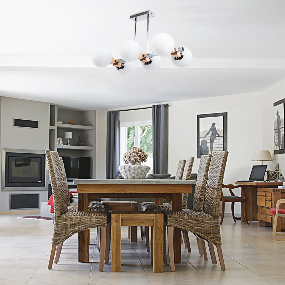 Современная люстра B NQ6625/6 в хромированном исполнении — стильный акцент для интерьеров в духе модерн, лофт или минимализм. Шесть ламп с цоколем E27 дают мощный, равномірний свет, ідеальний для просторных помещений: гостиной, столовой или кухни. Конструкция из прочной стали и матовое стекло делают модель одновременно эстетичной и надёжной.