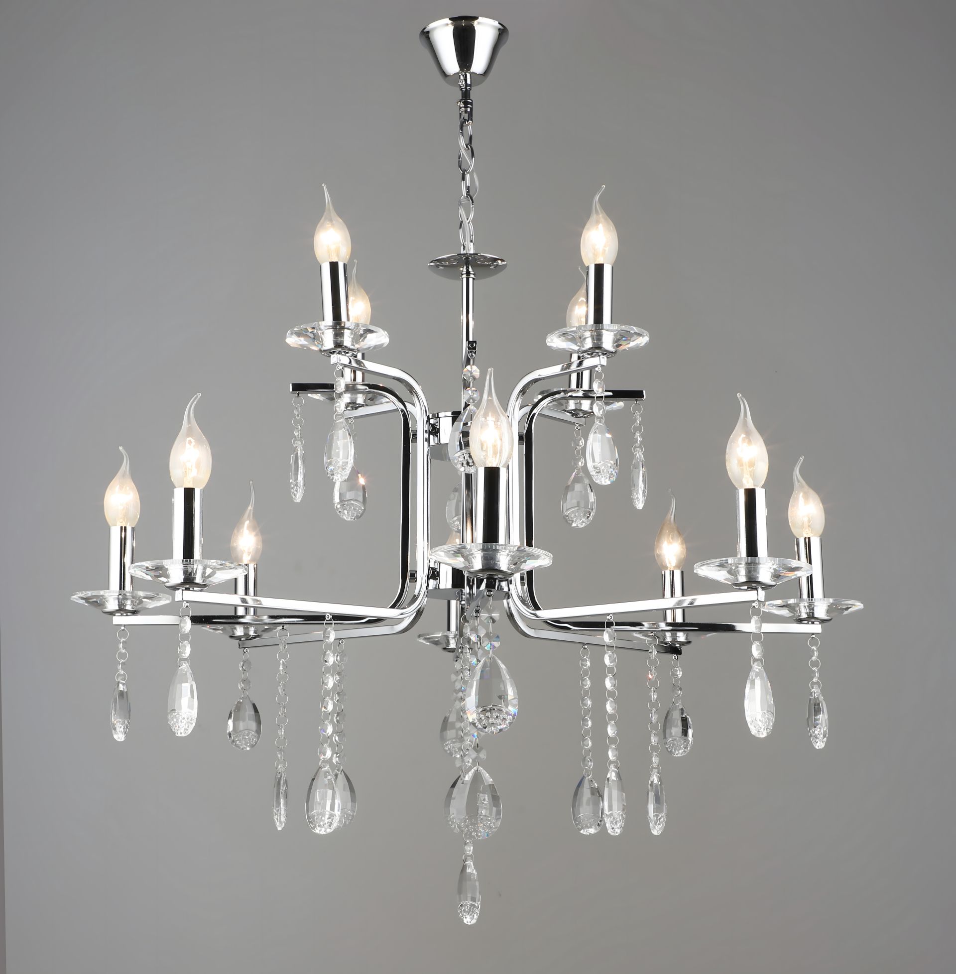 Изысканная люстра K2310/12 в стильном хромированном исполнении украсит большой интерьер. Двенадцать патронов типа E14 обеспечивают яркое и равномерное освещение, идеально подходящее для просторных гостиных, залов или больших столовых. Сочетание стали и хрусталя создаёт элегантное и долговечное изделие, которое добавит роскоши любому помещению.