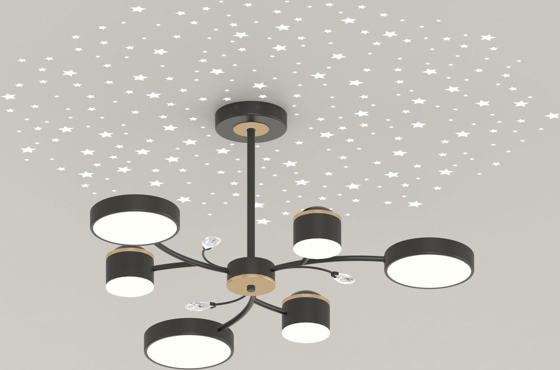 Люстра XI3346-6 — это не просто осветительный прибор, а настоящее воплощение магии в вашем доме! Сочетание глубокого чёрного цвета с изысканными золотыми акцентами создаёт роскошный вид, а её уникальная особенность — проекция звёздочек на потолок — превратит вашу комнату в сказочное ночное небо.