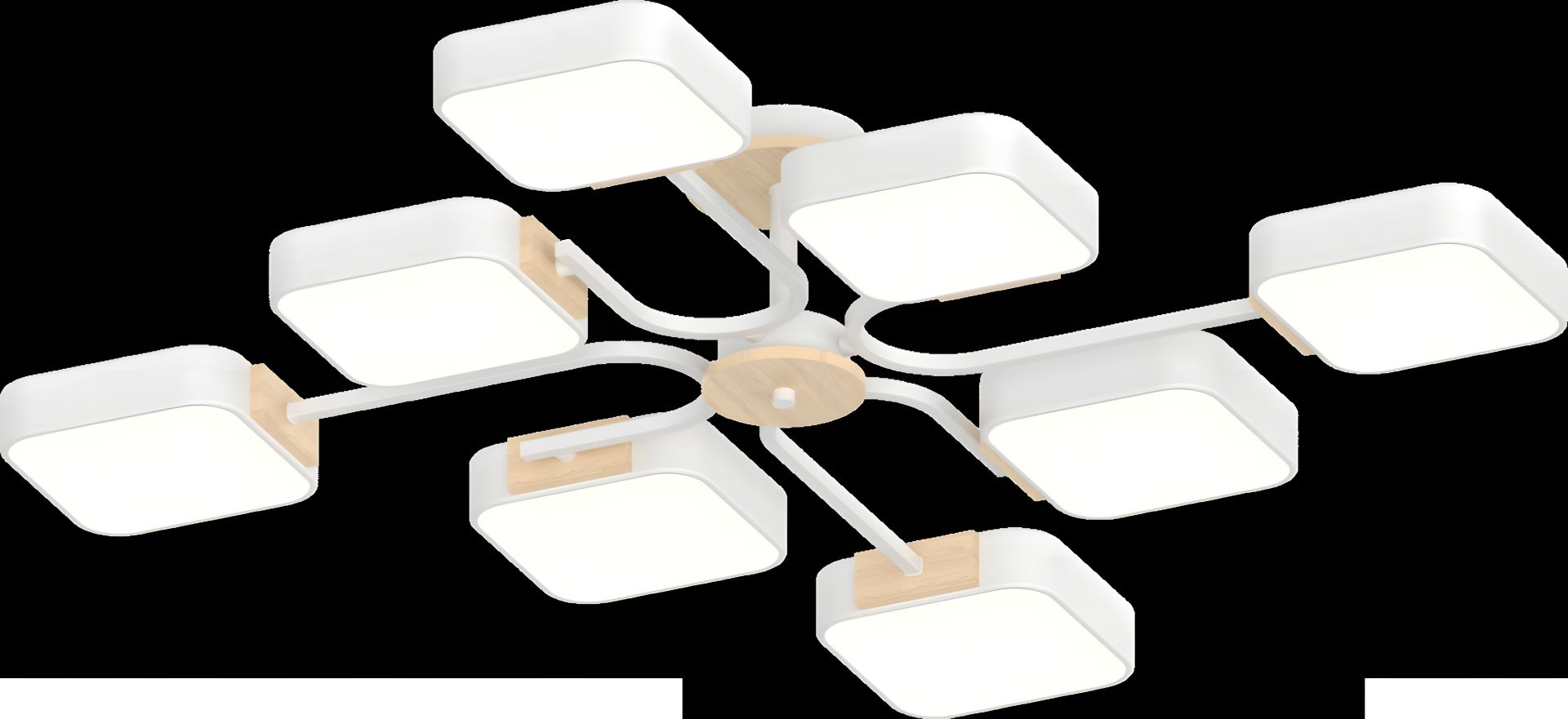 Современная люстра XI3348-8 в сочетании белого цвета с деревянными элементами создаст тёплую и стильную атмосферу в вашем помещении. Оснащена LED-платой мощностью 144W, она обеспечивает яркий световой поток 8640 люмен с возможностью выбора трёх цветовых температур — 3000K, 4200K, 6000K. Материалы — железо, ПВХ и дерево — гарантируют надёжность и долговечность изделия.