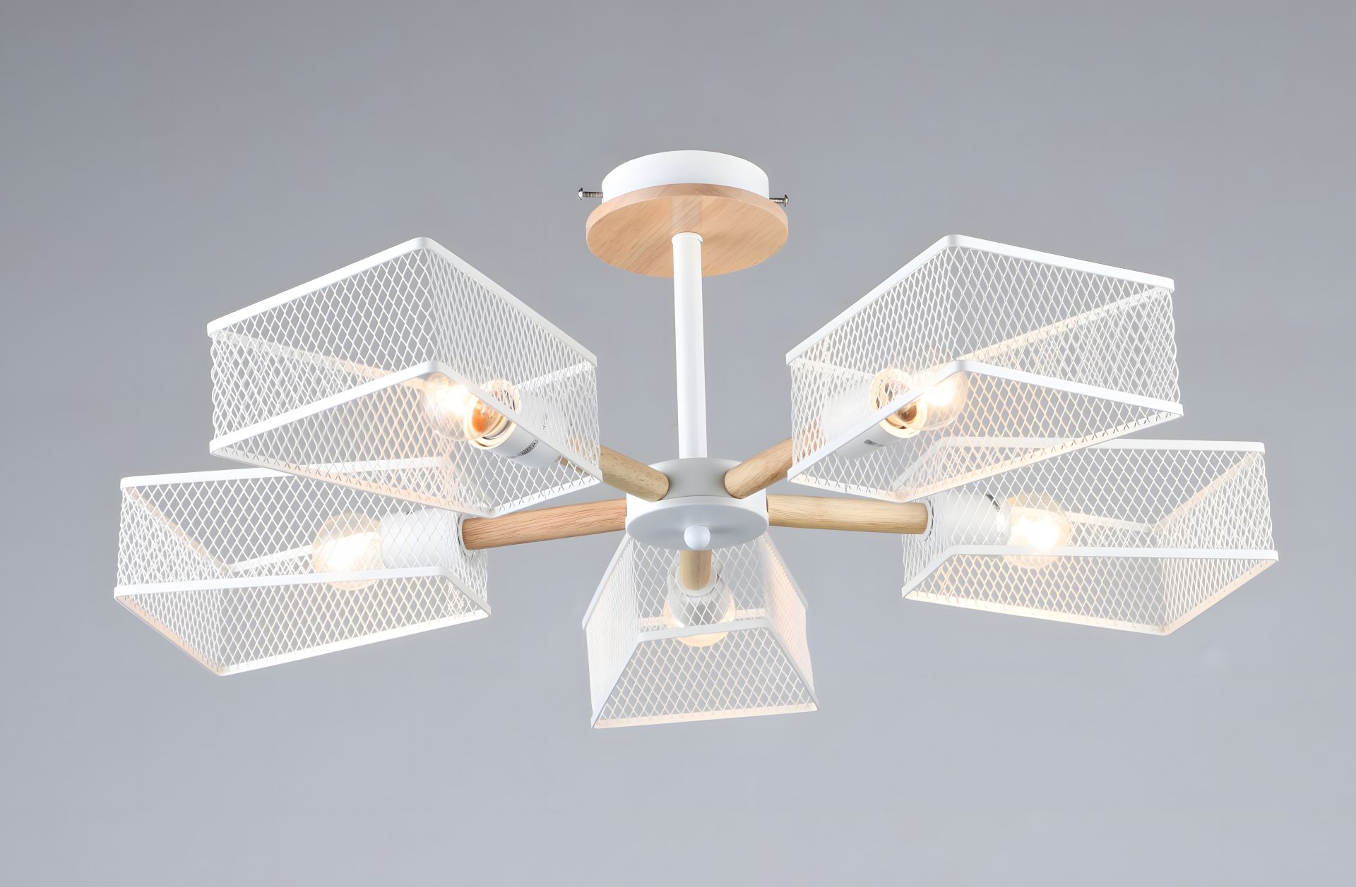 Люстра VALESO B N6687/5 Белый + Дерево: Современный Дизайн с Природным Теплом