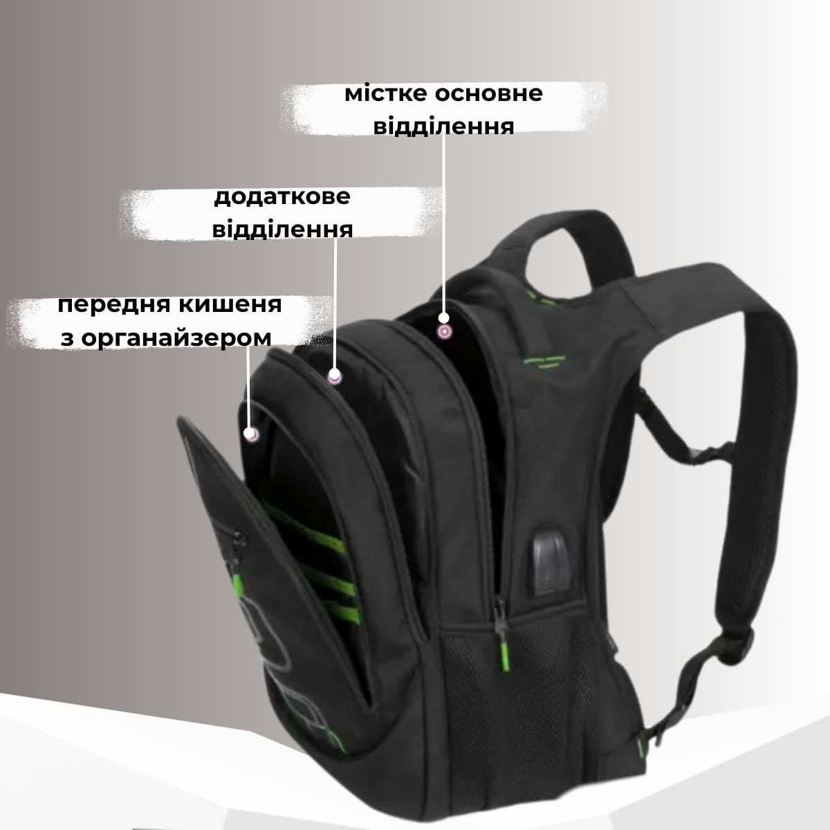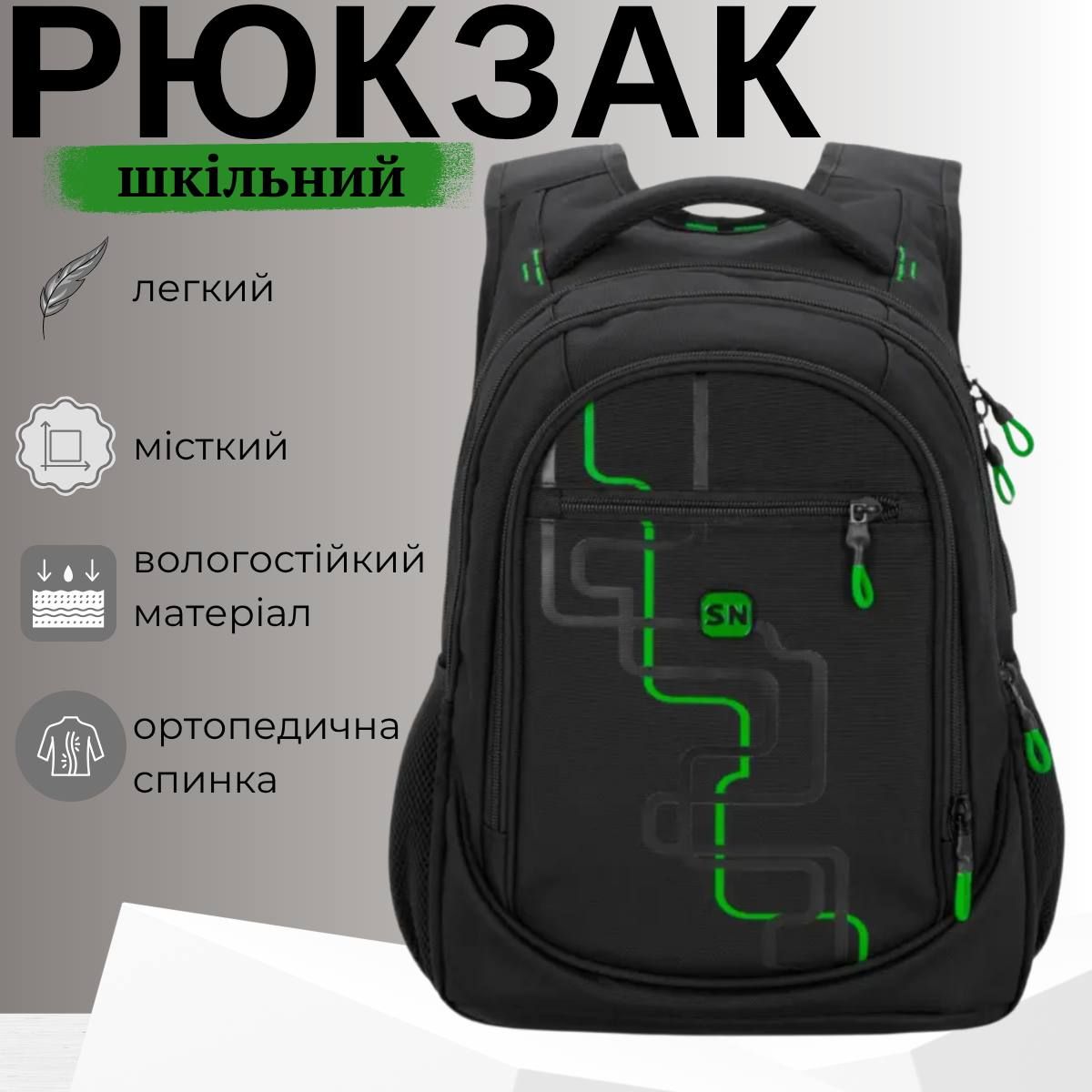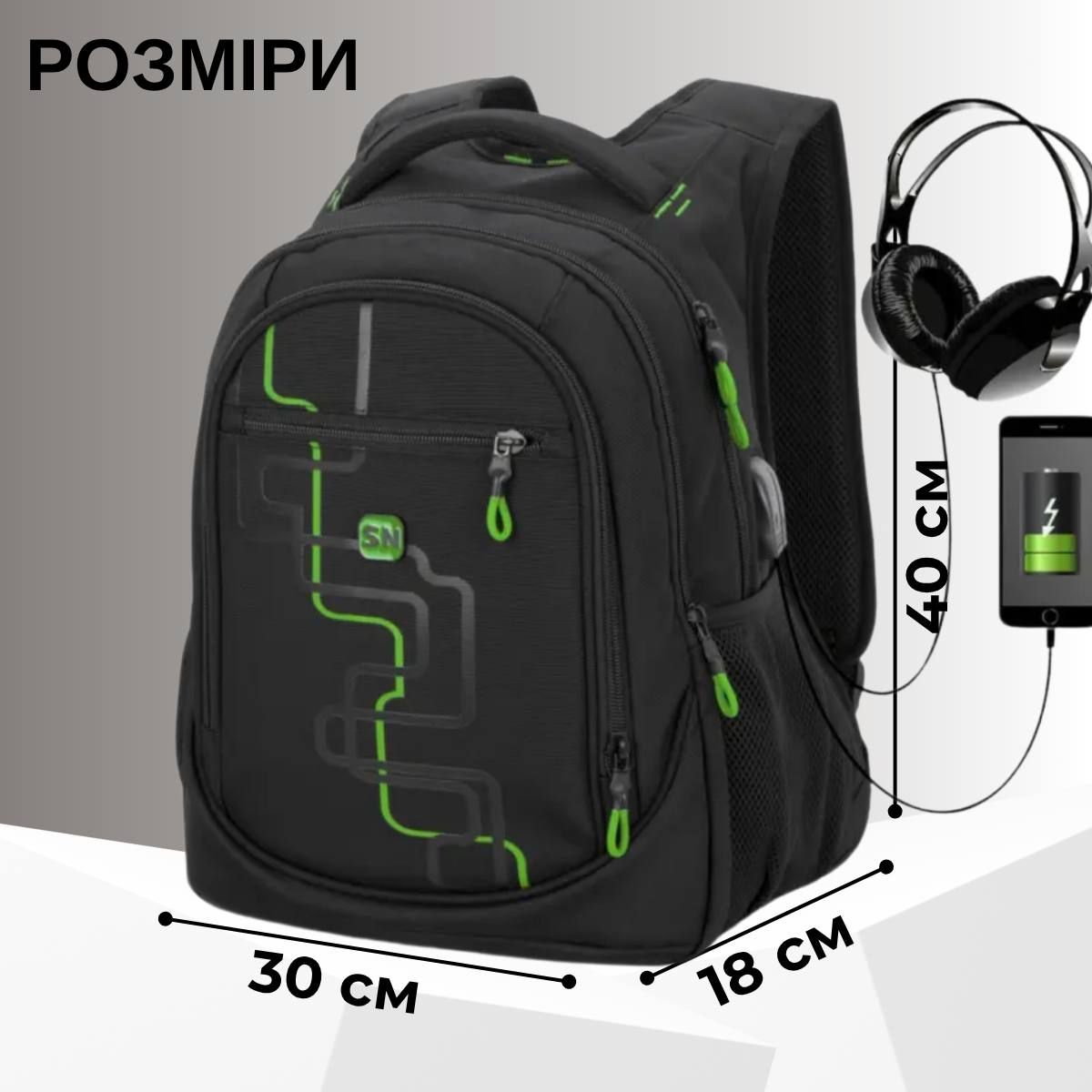 Школьный рюкзак Winner/SkyName для подростков с USB-слотом, черный, на 3 отделения