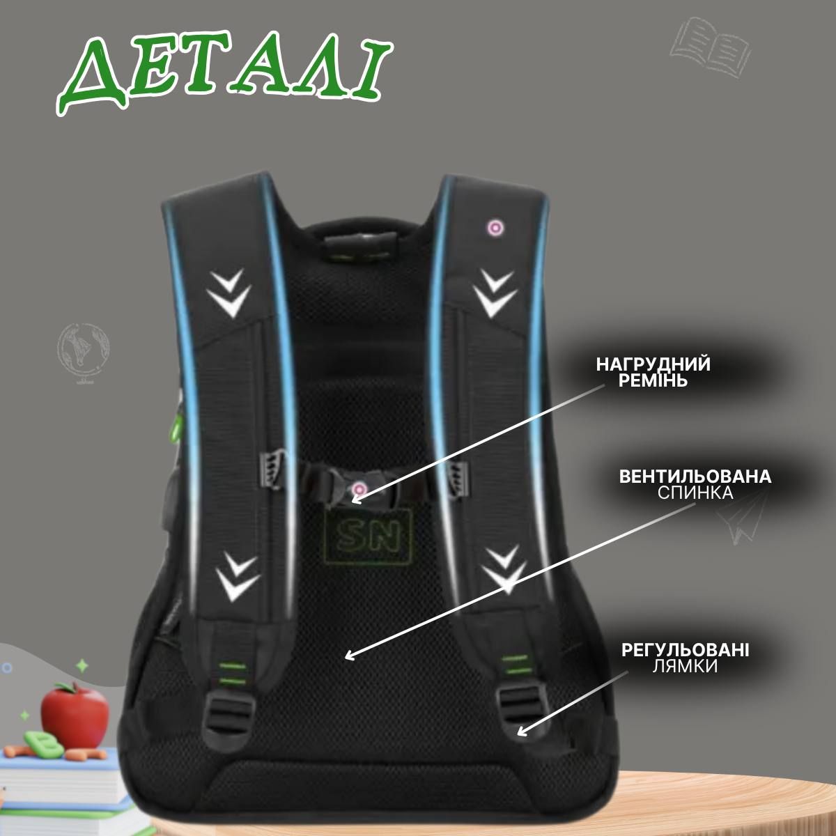 Плечевые вентилируемые лямки дополнены грудным креплением.