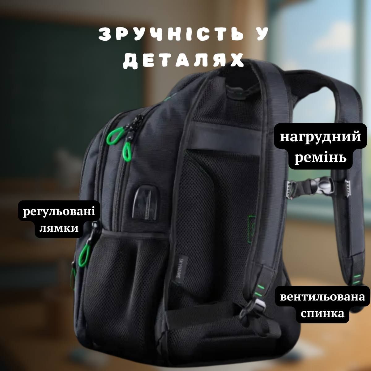 Плечевые вентилируемые лямки дополнены грудным креплением.