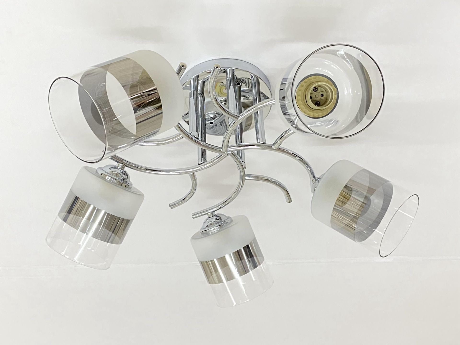 Мощность: Общая максимальная мощность составляет 5×60W, что позволяет обеспечить очень яркое и интенсивное освещение, достаточное для комфортного пребывания в больших помещениях.