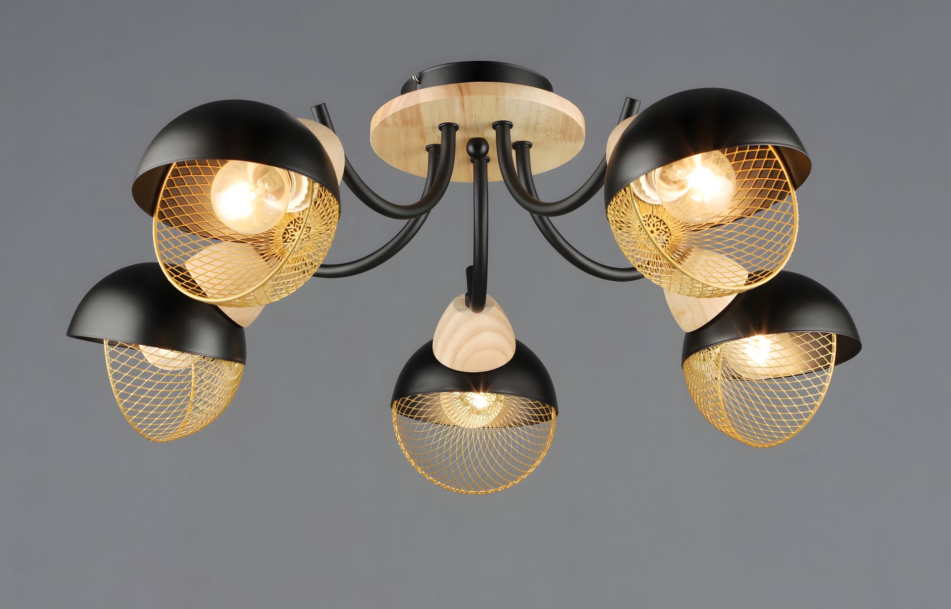 Свет, создающий настроение: Благодаря пяти стандартным патронам E27, вы получаете полную свободу в выборе лампочек. Это позволяет вам самостоятельно контролировать световой поток, мощность (до 5x60W) и, что самое важное, цветовую температуру. Создавайте любую атмосферу: от яркого и бодрящего света для продуктивной работы до мягкого и теплого сияния для расслабленного отдыха. Вы управляете светом, формируя идеальную среду.