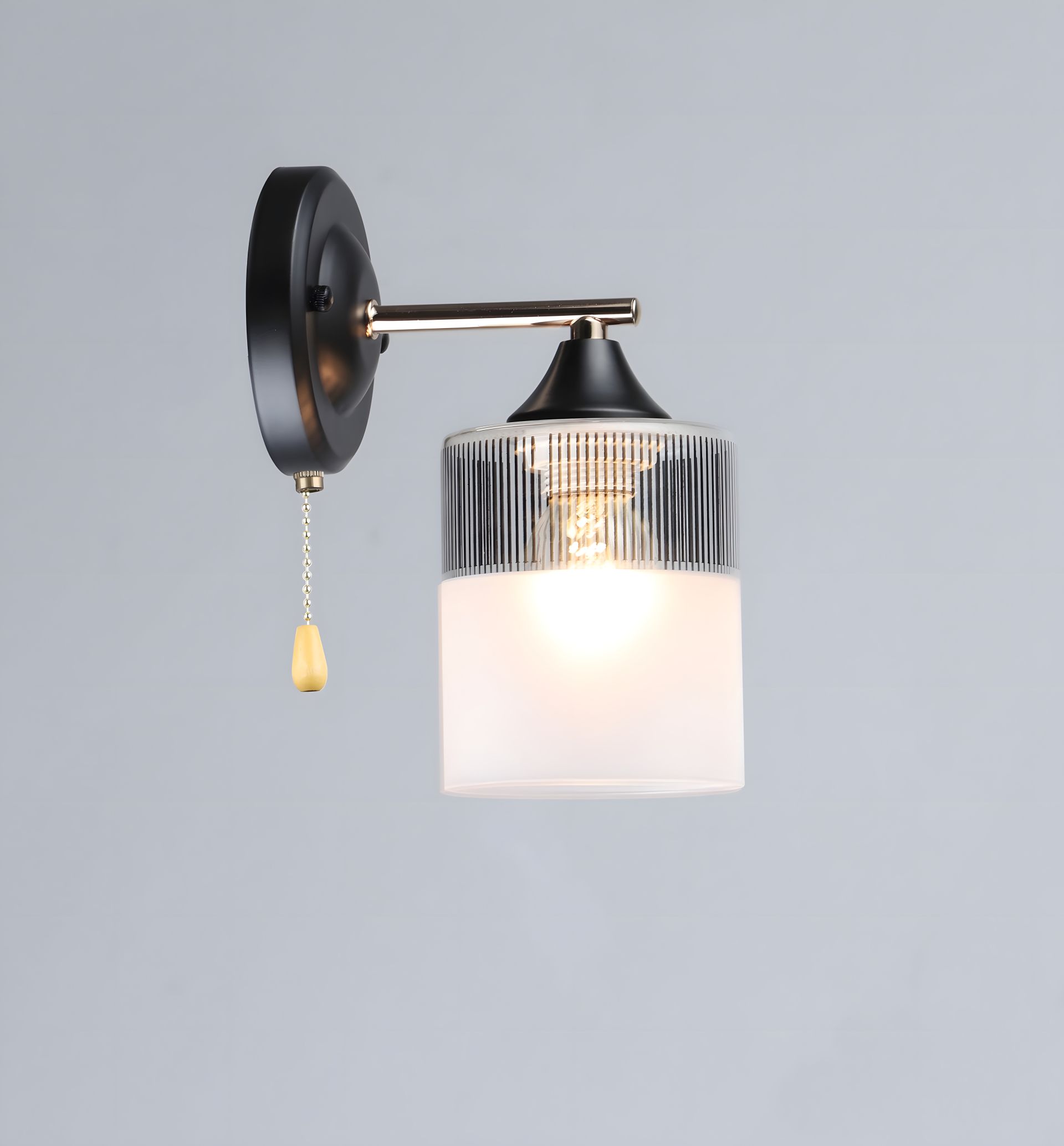 Светильник изготовлен из прочной стали и дополнен изящным стеклянным плафоном. Сочетание классического черного цвета с блестящим золотом придает бра особую роскошь и статусность. Этот контрастный дизайн отлично впишется в интерьеры в стиле ар-деко, модерн, минимализм или классический, создавая выразительный акцент.