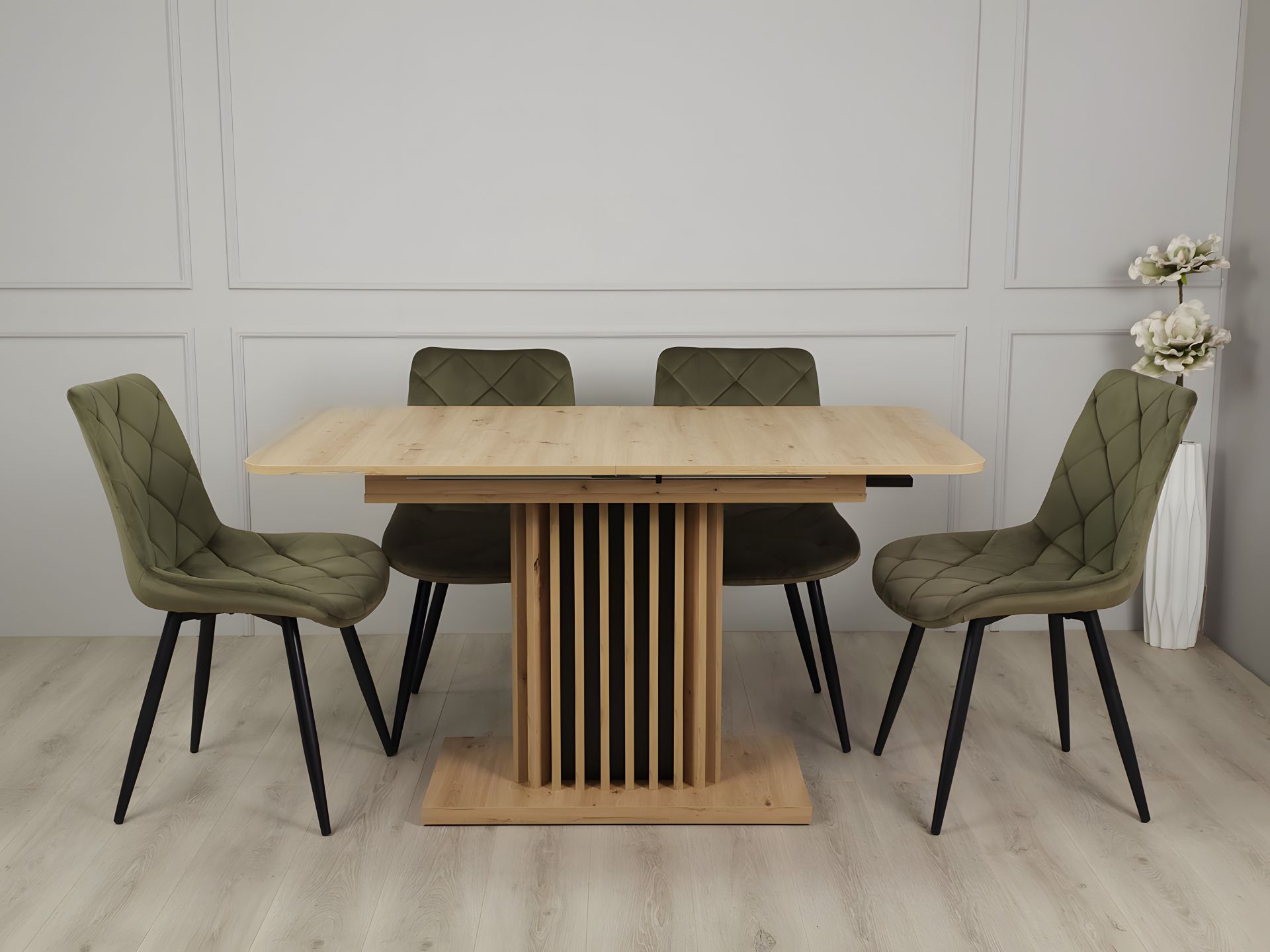 Стіл обідній Casandra має ламіновану стільницю товщиною 18 мм, що забезпечує міцність і стійкість до подряпин. Він оснащений розкладною функцією, що дозволяє змінювати його розмір від 140 см до 180 см, забезпечуючи додаткове місце для вашої родини і гостей.