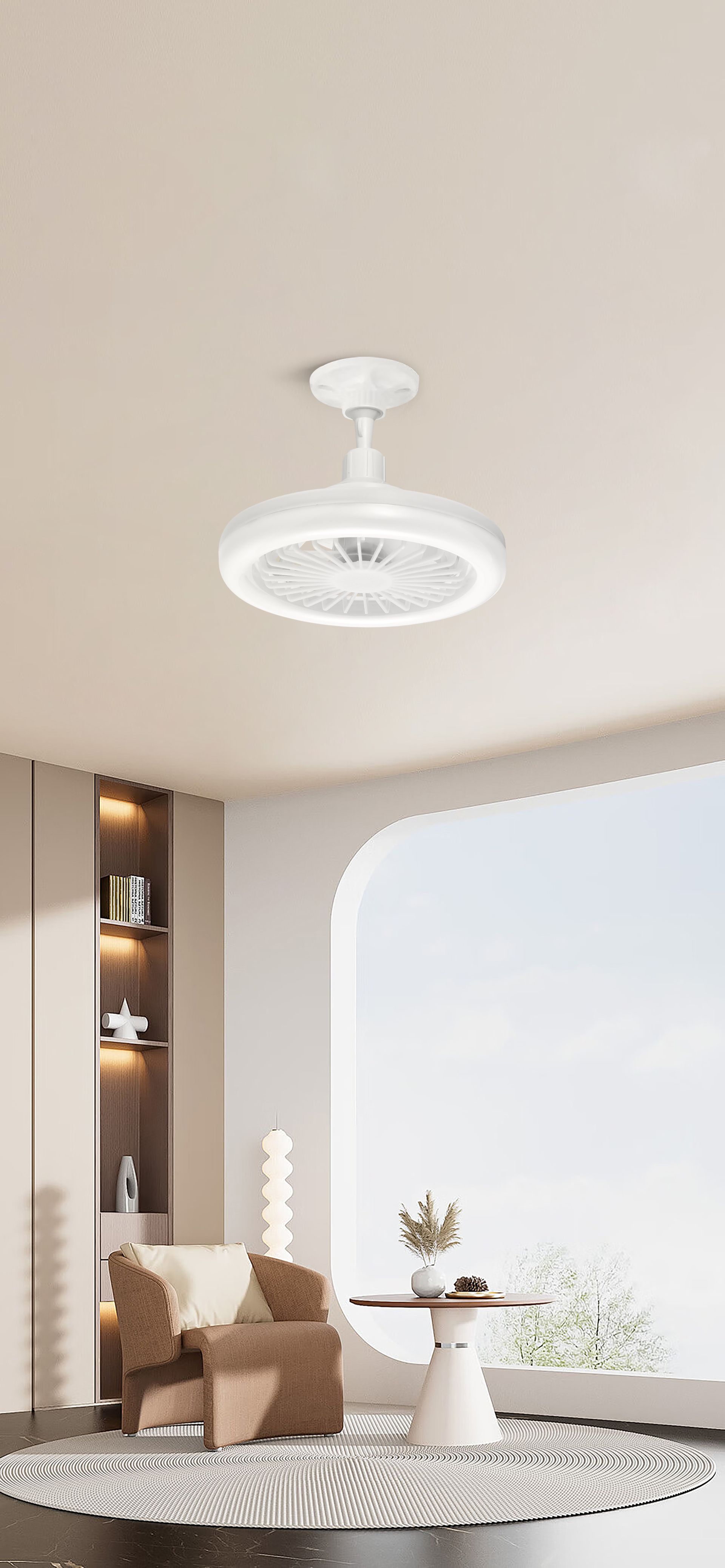 Откройте для себя многофункциональное решение для освещения и комфорта со светодиодной люстрой-вентилятором 2H-010. Этот инновационный светильник, выполненный в чистом белом цвете, сочетает в себе эффективный свет и приятный поток воздуха, что делает его идеальным для небольших комнат, детских или кухонь. Его компактная конструкция, изготовленная из прочного полипропилена, имеет размеры 260*H172 мм и не перегружает пространство. Благодаря поворотному шарниру вы можете легко настроить направление света и воздушного потока, что является чрезвычайно удобной функцией.