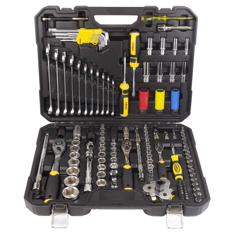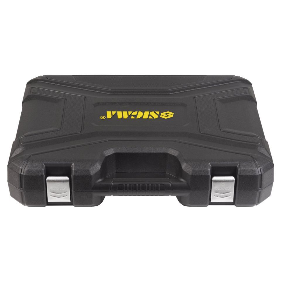 Для удобного хранения и транспортировки, набор поставляется в кейсе выполненный из ударопрочного ABC-пластика. Кейс обладает усиленными петлями и металлическими замками, которые хорошо фиксируются и предотвращают непроизвольное открытие кейса. Весь инструмент крепко фиксируется в посадочных местах, не высыпаясь при транспортировке. Небольшие габаритные размеры набора позволяют компактно разместить его в багажном отделении вашего автомобиля или в гараже.