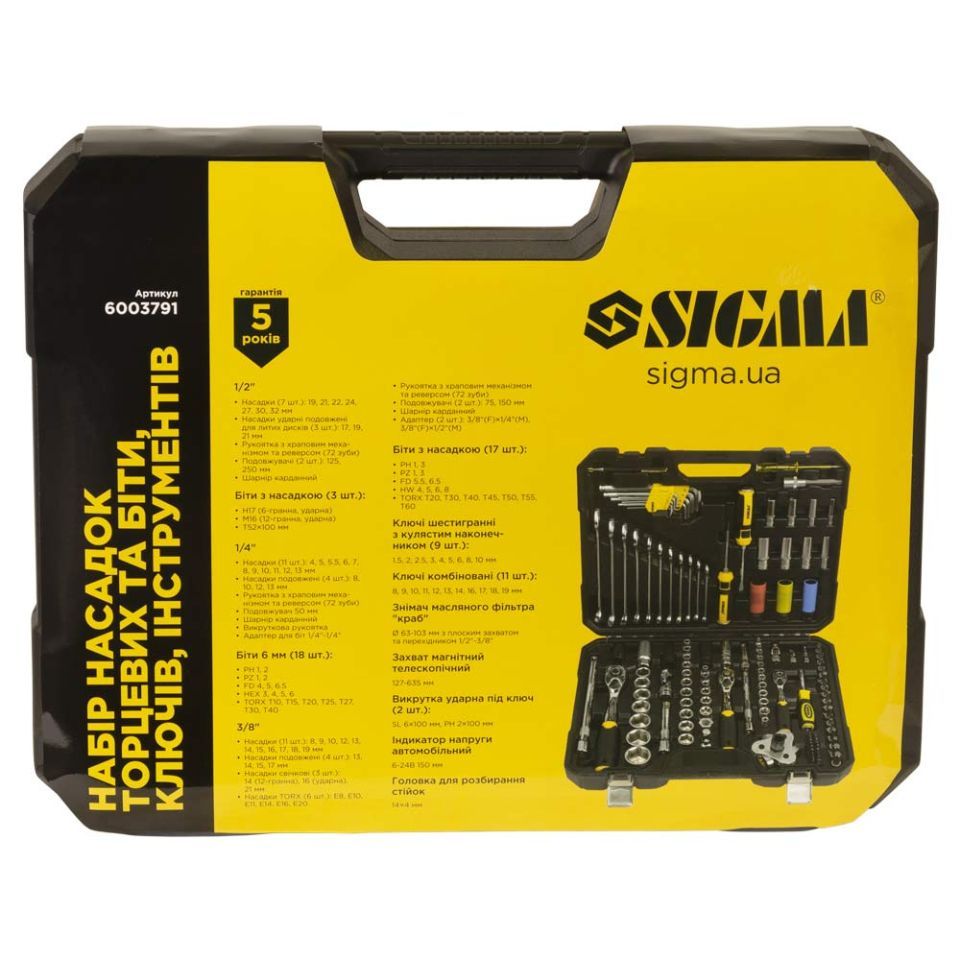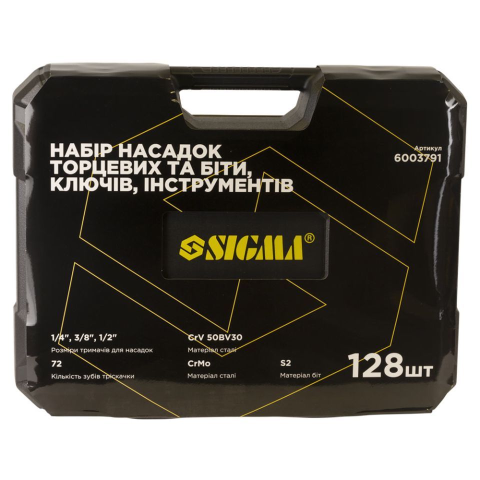 Набор насадок торцевых и биты, ключей, инструментов ¼" ⅜" ½" 128шт CrV SIGMA 6003791