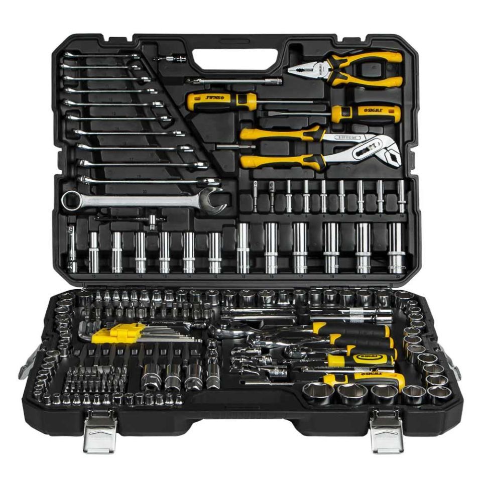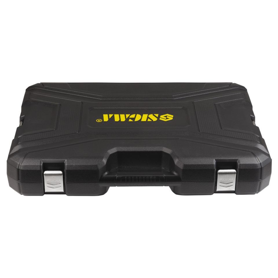Для удобного хранения и транспортировки, набор поставляется в кейсе выполненный из ударопрочного ABC-пластика. Кейс обладает усиленными петлями и металлическими замками, которые хорошо фиксируются и предотвращают непроизвольное открытие кейса. Весь инструмент крепко фиксируется в посадочных местах, не высыпаясь при транспортировке. Небольшие габаритные размеры набора позволяют компактно разместить его в багажном отделении вашего автомобиля или в гараже.
