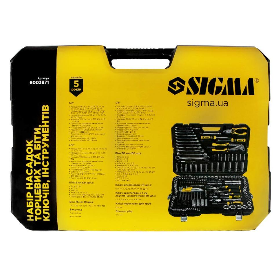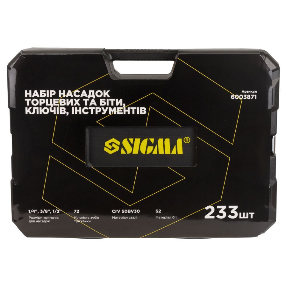 Набор насадок торцевых и биты, ключей, инструментов ¼" ⅜" ½" 233шт CrV SIGMA 6003871