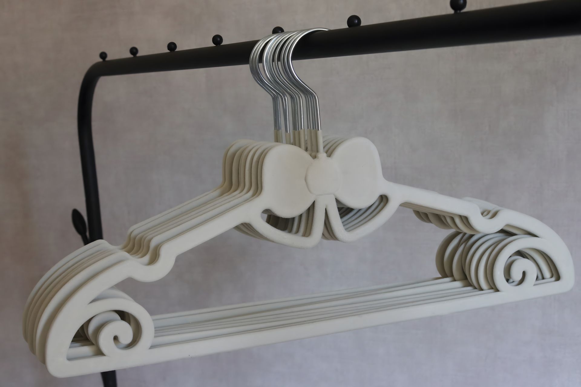 Одежда вешалки пластик с велюровым покрытием с перекладиной. Крюк ротари. В наборе 10 шт. Универсальный, как предполагалось