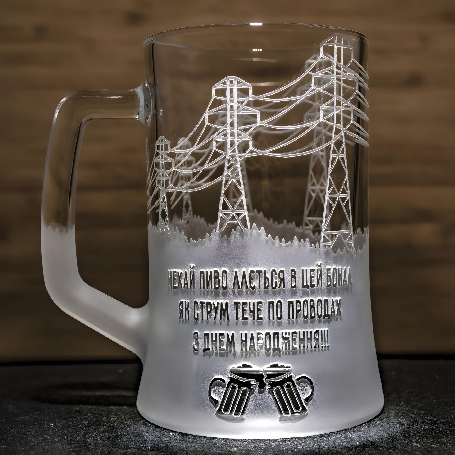Гравированный пивной бокал - подарок для энергетика, электрика на день рождения