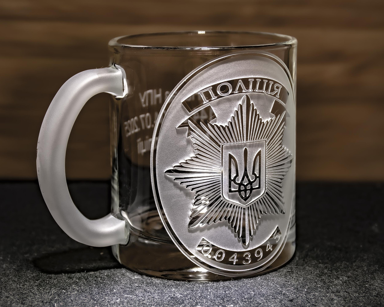 Подарок для полицейского - чашка с гравировкой жетона и индивидуального номера