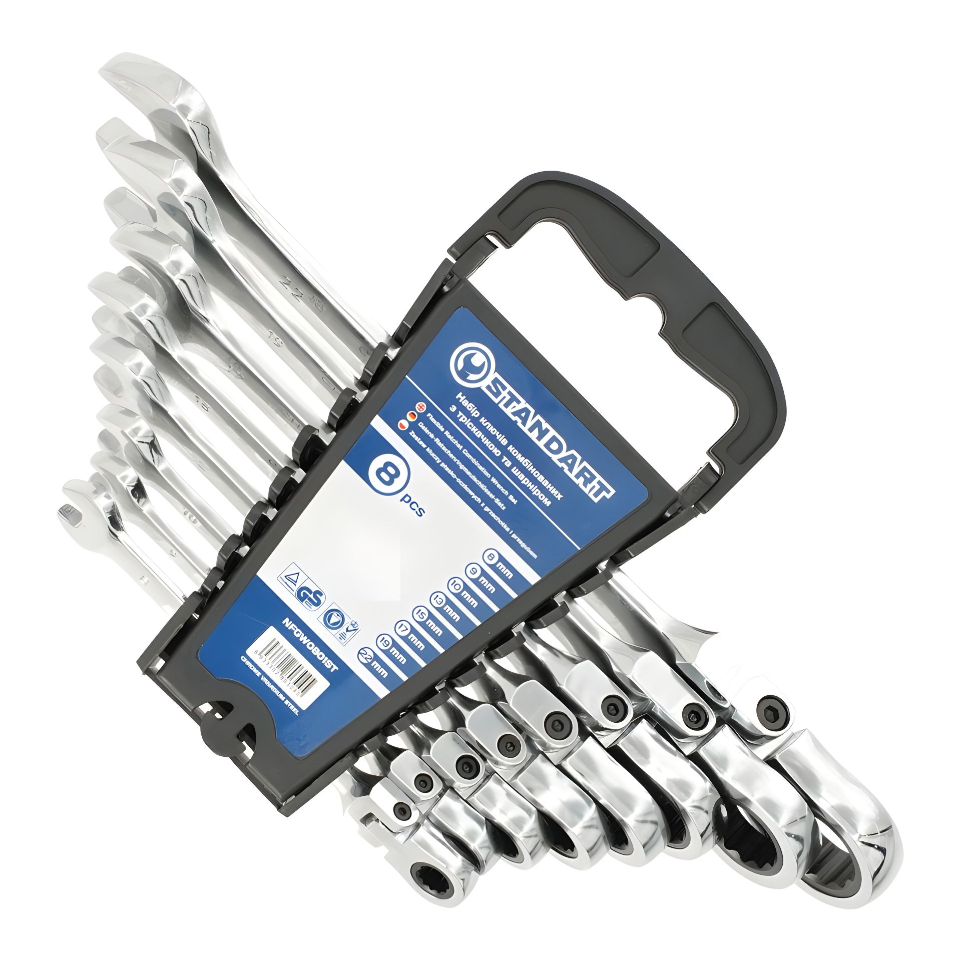 Набор ключей комбинированных с трещоткой и шарниром 8-10,13,15,17,19,22мм 8ед. на холдере СТАНДАРТ NFGW0801ST