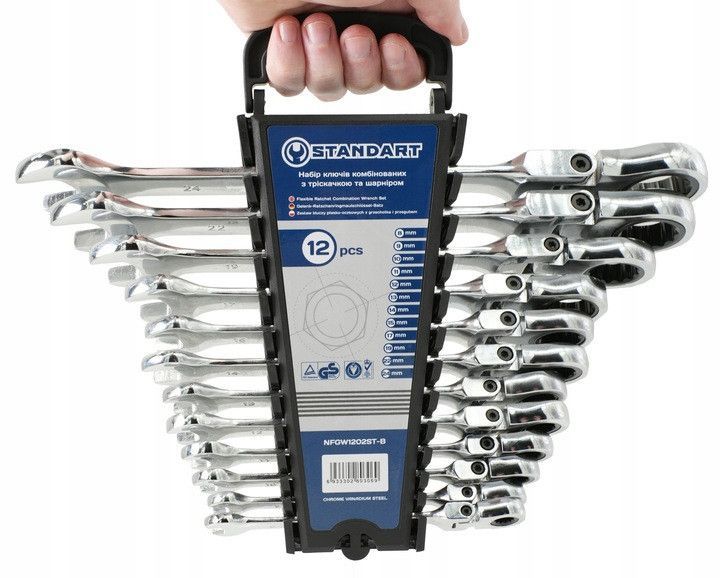 Набор комбинированных ключей с трещоткой и шарниром 8-24 мм, 12 ед., СТАНДАРТ NFGW1202ST-B