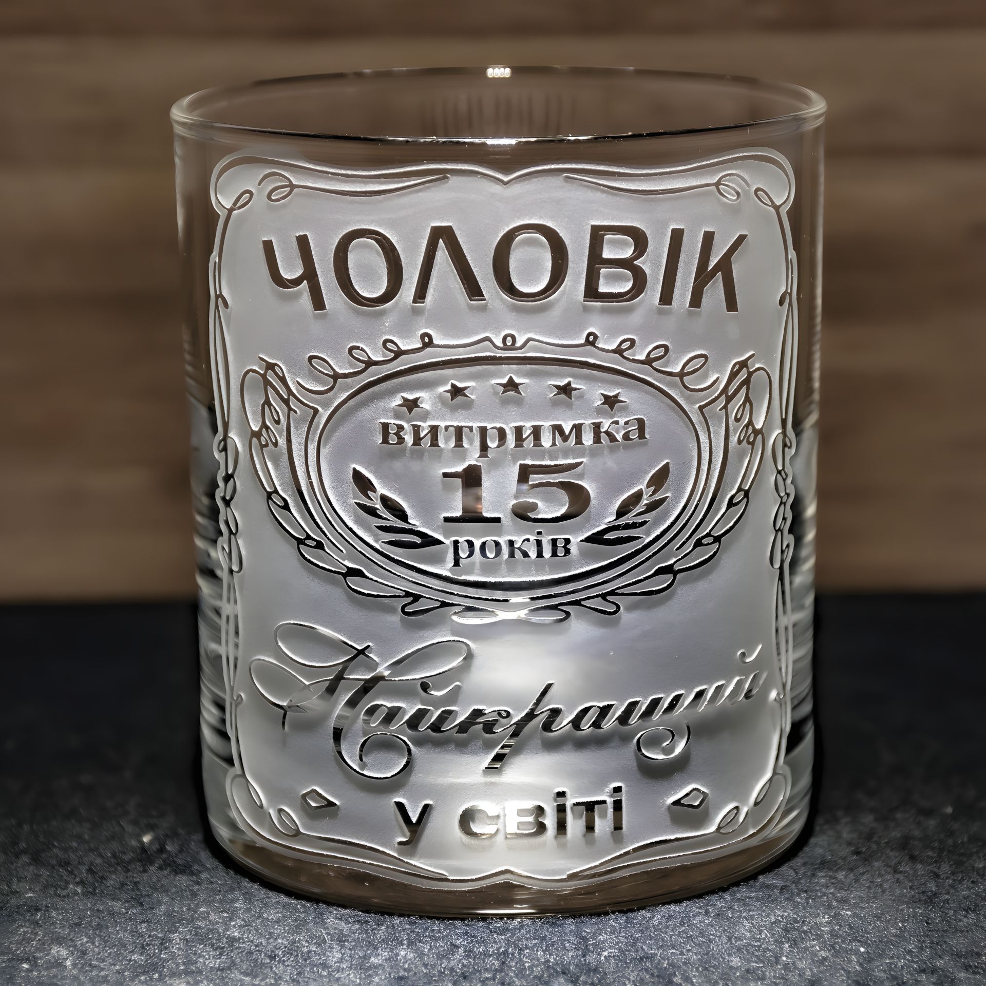 Именной стакан с гравировкой «Муж выдержка 15 лет Самый лучший» для виски, воды и сока на годовщину свадьбы
