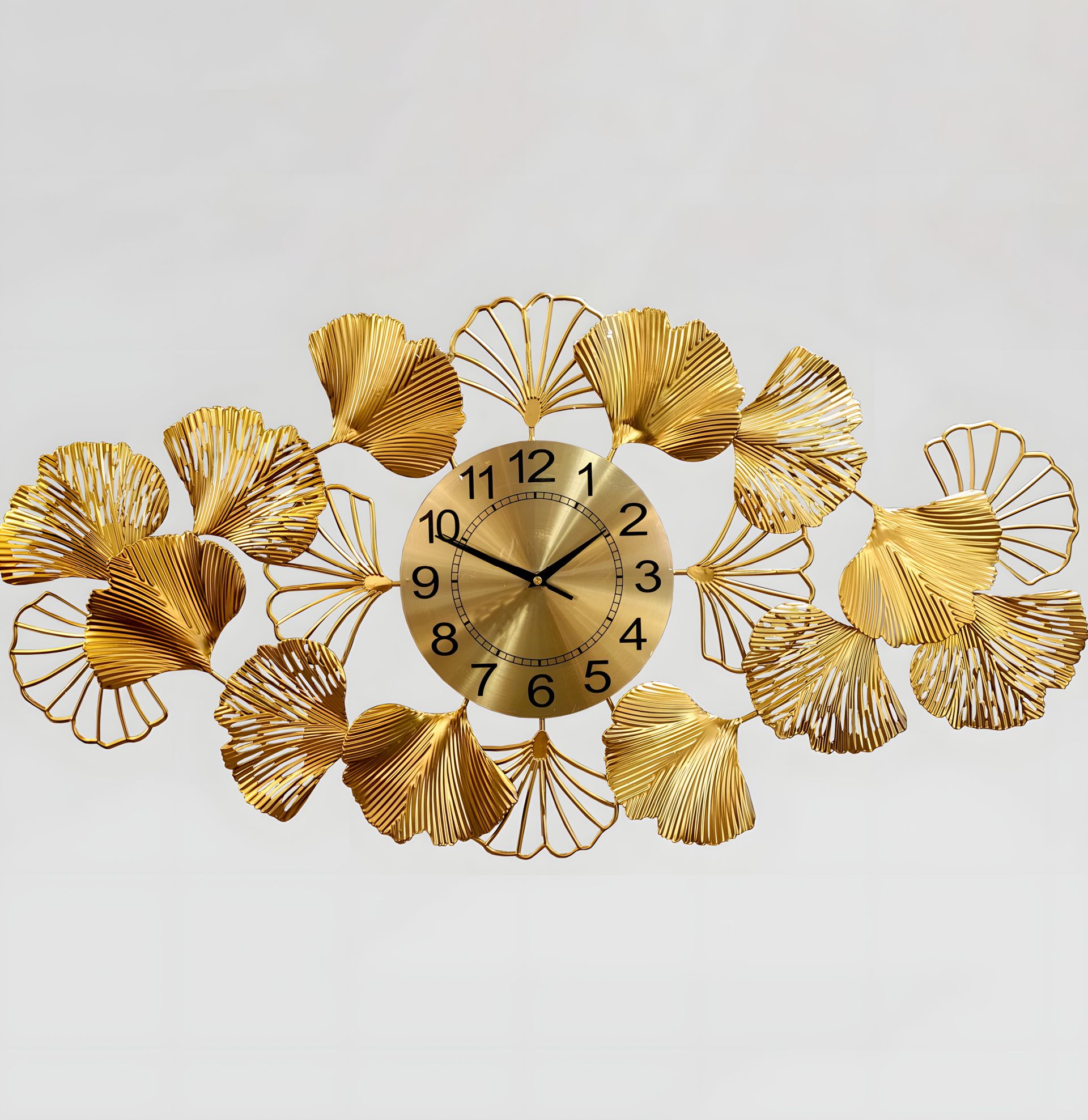 Большие настенные часы "Букет Золотистый" (95х47 см) для гостиной