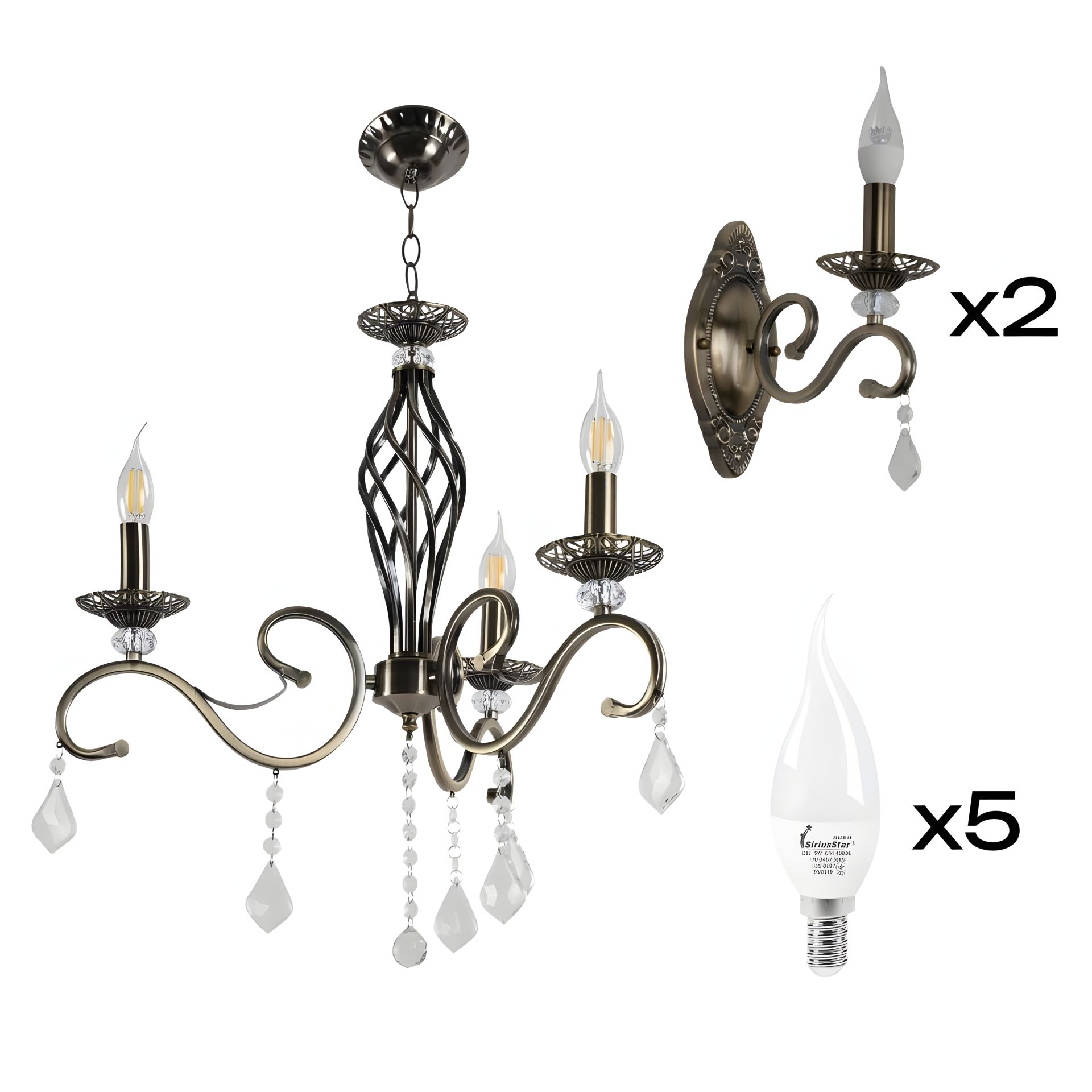 Комплект освещения: Люстра Sirius N1208/5 + 2 бра B N1208/1W с лампочками