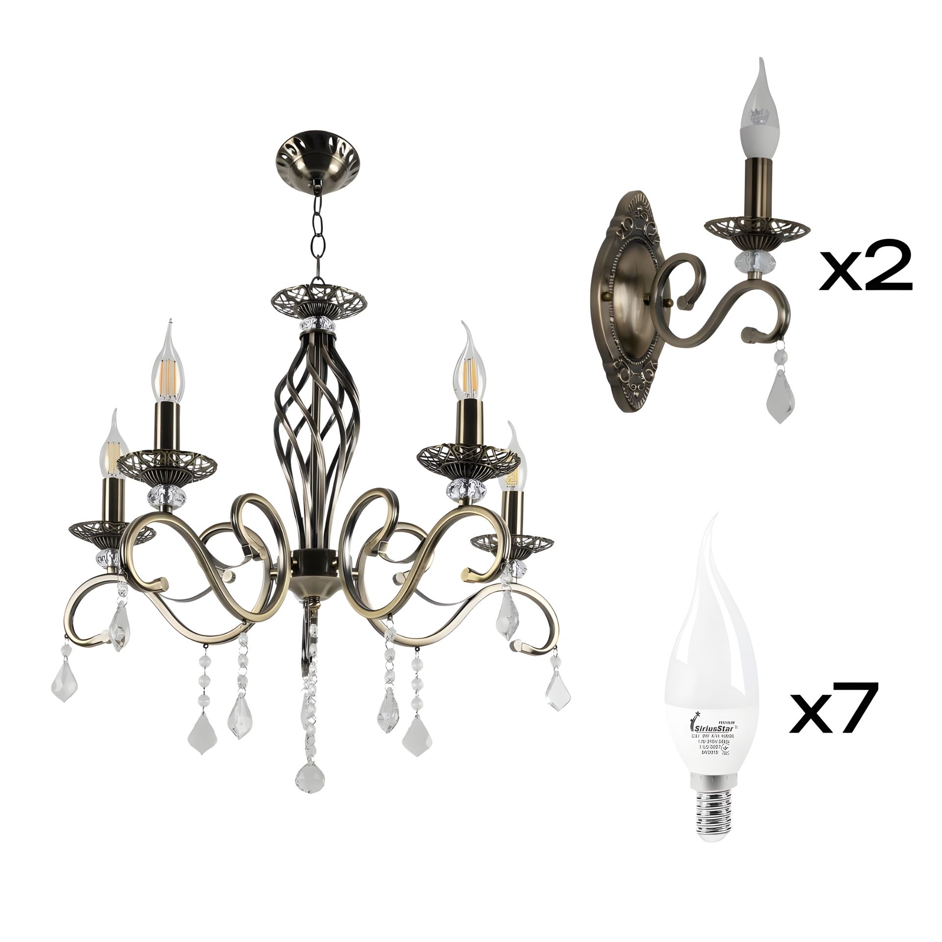 Комплект Sirius: Люстра N1208/5 + 2 Бра B N1208/1W с лампочками