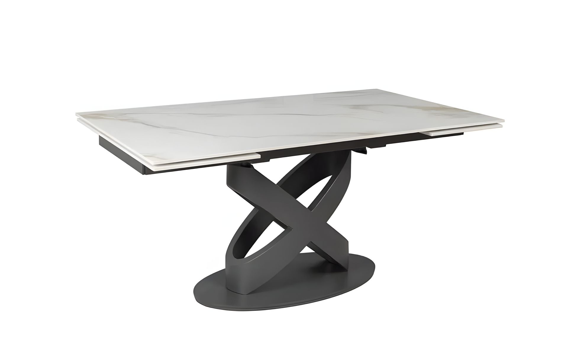 У просторі, де важлива рівновага між стилем і функцією, стіл Річмонд займає особливе місце. Витончений, з глянцевою керамічною стільницею кольору молока, він створює м’який акцент в інтер’єрі - світлий, свіжий і водночас ґрунтовний. Його образ стриманий, але глибокий. Саме такий, який хочеться мати в центрі сучасної обідньої зони. Основний розмір стільниці - 160 см - ідеально підходить для щоденного користування. Але коли приходять гості або потрібно більше простору, приховані бокові вставки легко розширюють площу до 240 см. Габарити у складеному вигляді: 1600x900x750 мм. Габарити у розкладеному вигляді: 2400x900x750 мм. Конструкція розкладається у два етапи (по 40 см з кожного боку), що дозволяє гнучко налаштовувати довжину під конкретну ситуацію. У розкладеному вигляді стіл зручно вміщує 8–10 персон. Основні характеристики: Глянцева поверхня з кераміки має приємну текстуру, легко очищується й стійка до подряпин, температури та щоденного навантаження. Колір - молочно-білий, із м’яким блиском, який не «холодить», а додає світла. Центральна чорна опора - геометрично чітка, з металевими панелями, які забезпечують міцність і стабільність. Завдяки такому рішенню навколо столу зручно розмістити стільці з будь-якого боку - без завад у ногах. Контраст чорного і світлого кольору створює виразну композицію, яка виглядає стильно і водночас стримано. Переваги столу Річмонд: Розкладний стіл із керамічною стільницею - практичний і естетичний. Глянцевий молочний відтінок - освітлює простір і виглядає елегантно. Зручна система трансформації - бокові вставки приховані, розкладаються легко. Центральна опора - забезпечує простір для ніг і візуальний баланс. Місткий обідній стіл для вітальні або студії - від щоденних обідів до великих зустрічей. Стіл Річмонд - це не просто поверхня для сервірування. Це центр спілкування, тепла і подій. Світлий, надійний, сучасний - він гармонійно доповнює інтер’єр, роблячи його завершеним.