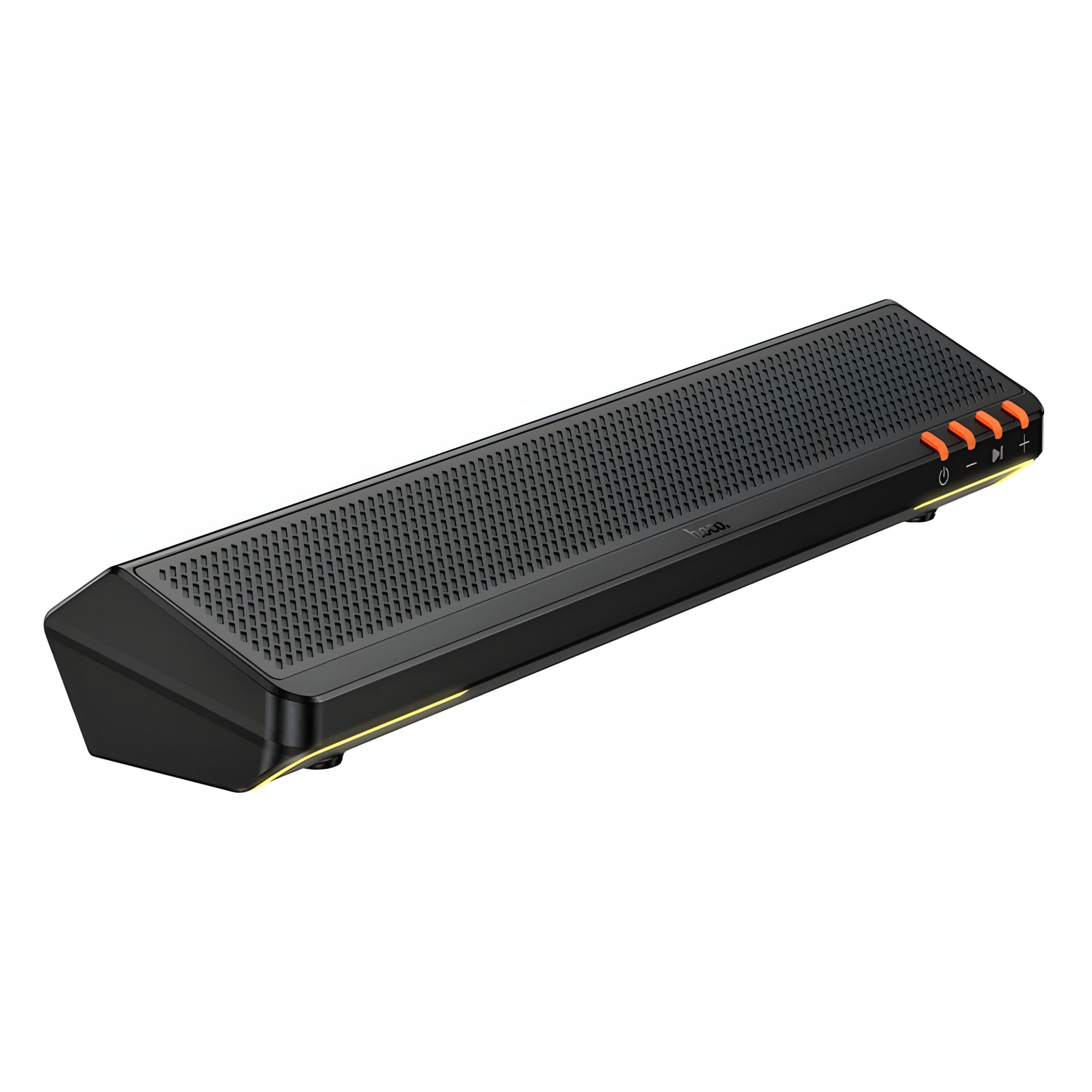 HOCO BS66 — это стильная и удобная акустическая система формата саундбар, созданная для комфортного прослушивания музыки, просмотра фильмов и игр на компьютере или ноутбуке. Благодаря поддержке Bluetooth 5.4 и USB-подключения с DAC колонка обеспечивает качественное и стабильное звучание, а эффектная LED-подсветка придаёт современный вид рабочему или игровому пространству.