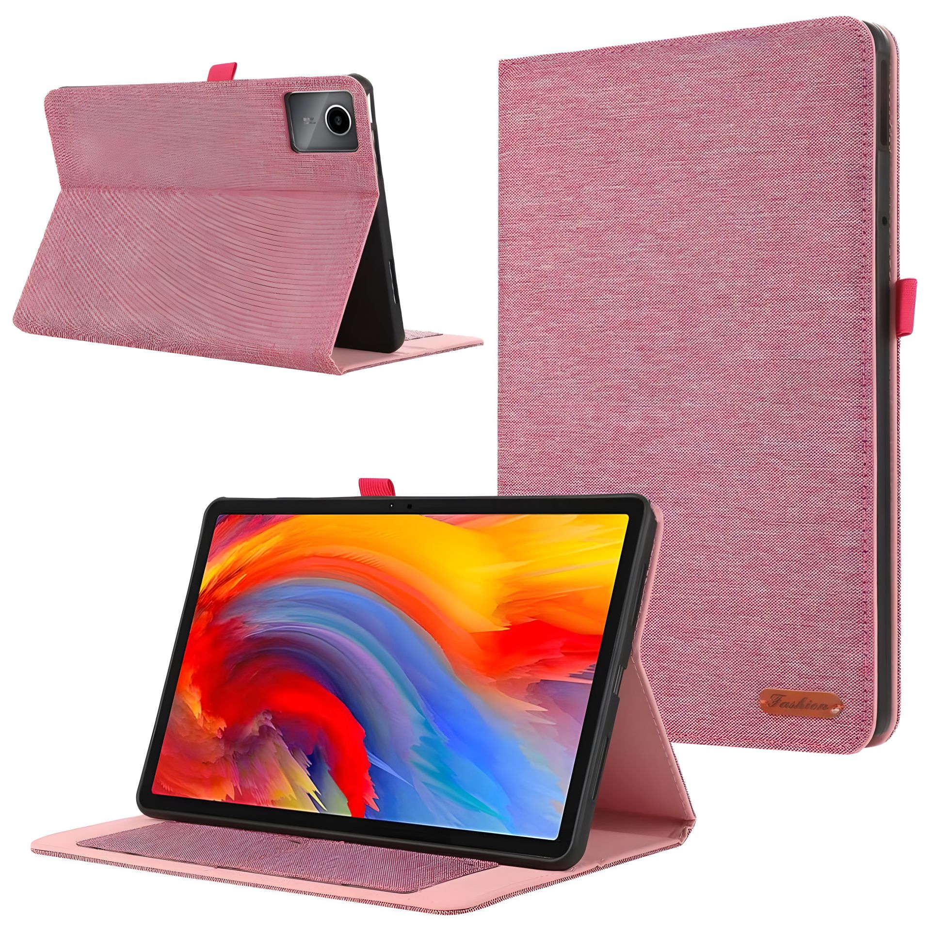 Чохол FashionGum на планшет Lenovo Tab K11 Plus (M11 Plus) 11.45 зроблений з приємного щільного матеріалу, який прослужить набагато довше звичайної еко шкіри. Він набагато менше затирається, не тріскається і не вигоряє на сонці. Усередині м'яка оксамитова тканина не дасть дрібним порошинкам залишати подряпини на моніторі. За сонову виробу береться силіконовий бампер в який планшет скочується, каркас прироблений до загальної обкладинки, яка виготовлена у вигляді книжки, обкладинка якої загинається в різних положеннях, таким чином перетворюючись на підставку. У чохлі Lenovo Tab K11 Plus TB352fu TB352xu є всі потрібні оригінальні прорізи під камери, регулятори та отвори, тим самим не зменшуючи функціональність таблетки. Обкладинка має функцію автосон, при закритті екран гасне, тим самим заощаджуючи енергію гаджета, а при відкритті сам включається, і не треба щоразу натискати для цього відповідну кнопку.