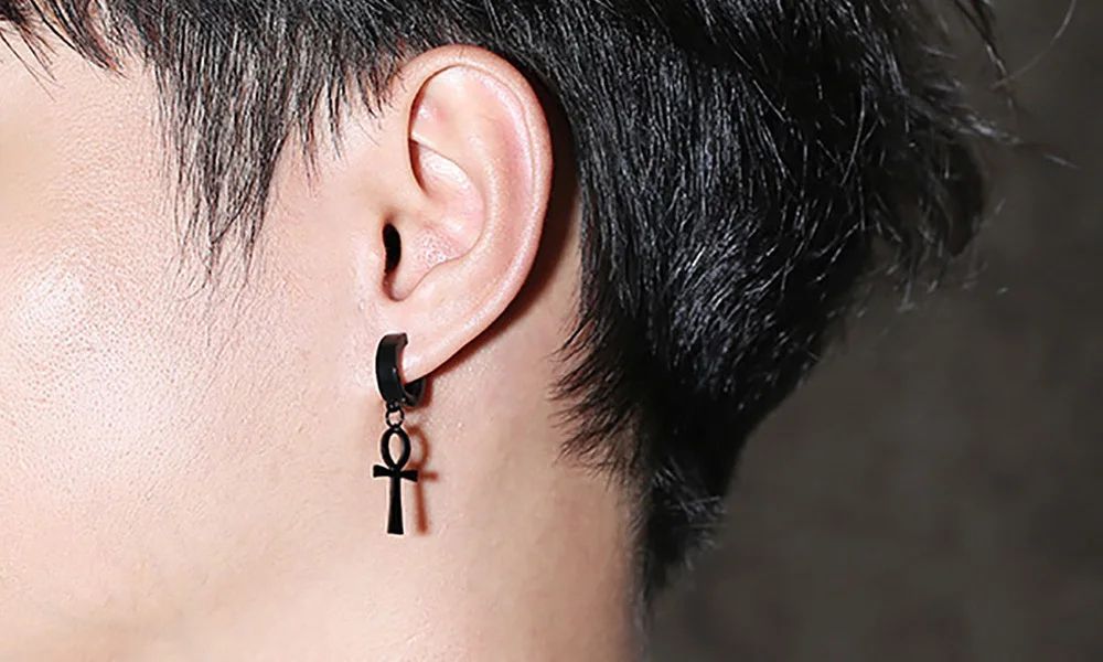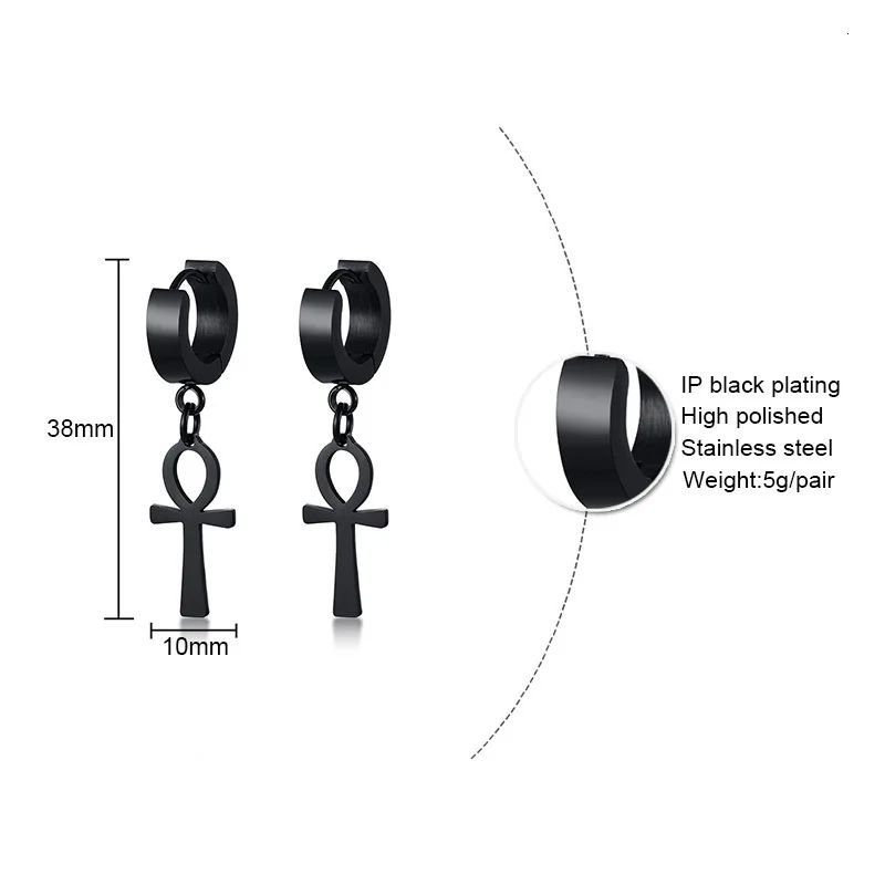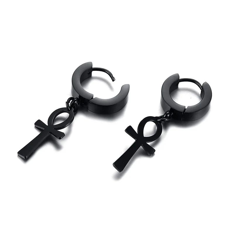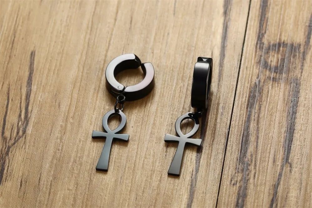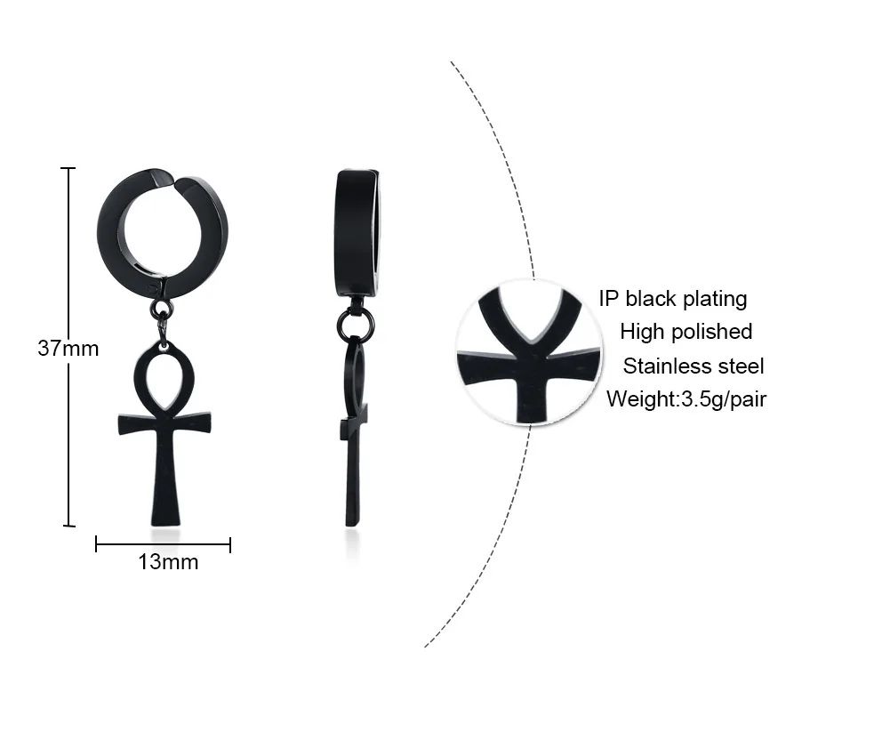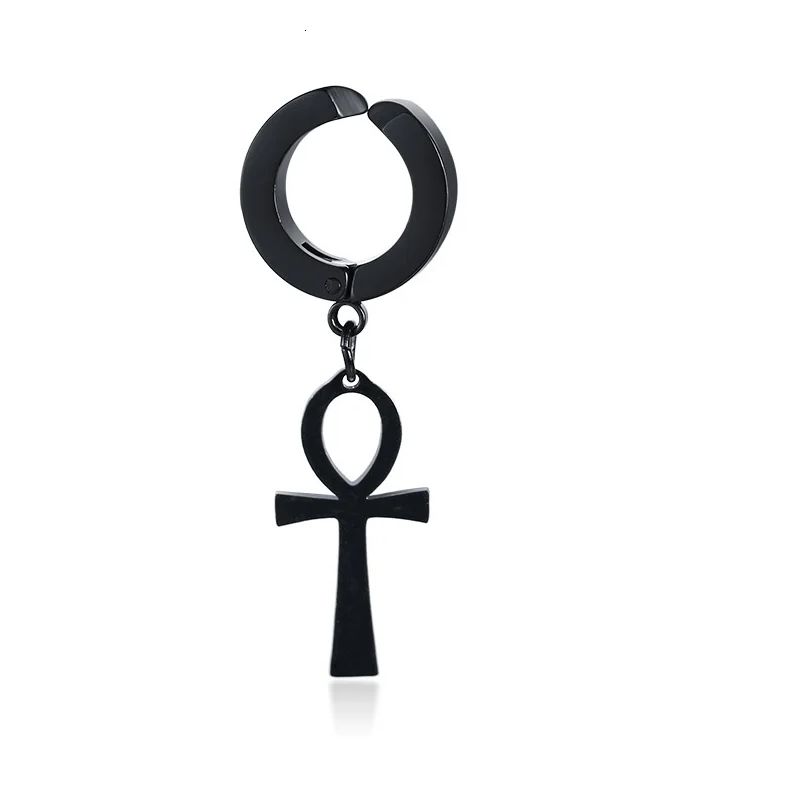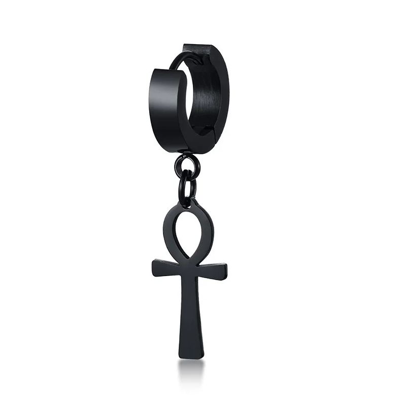 Серьги черный Анкх египетский крест жизни "Anch" Анх 1шт на прокол или клипса