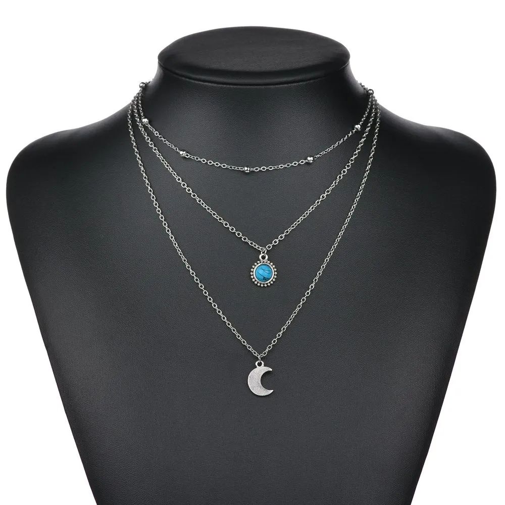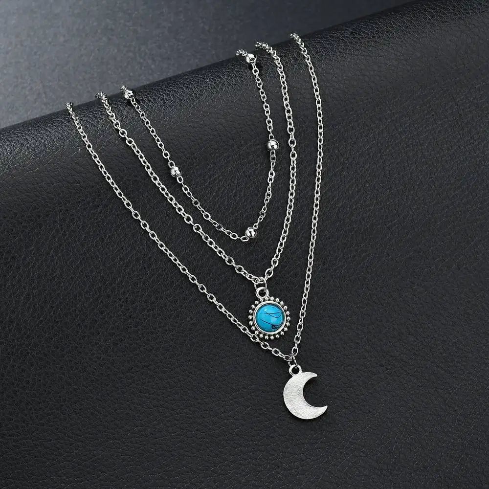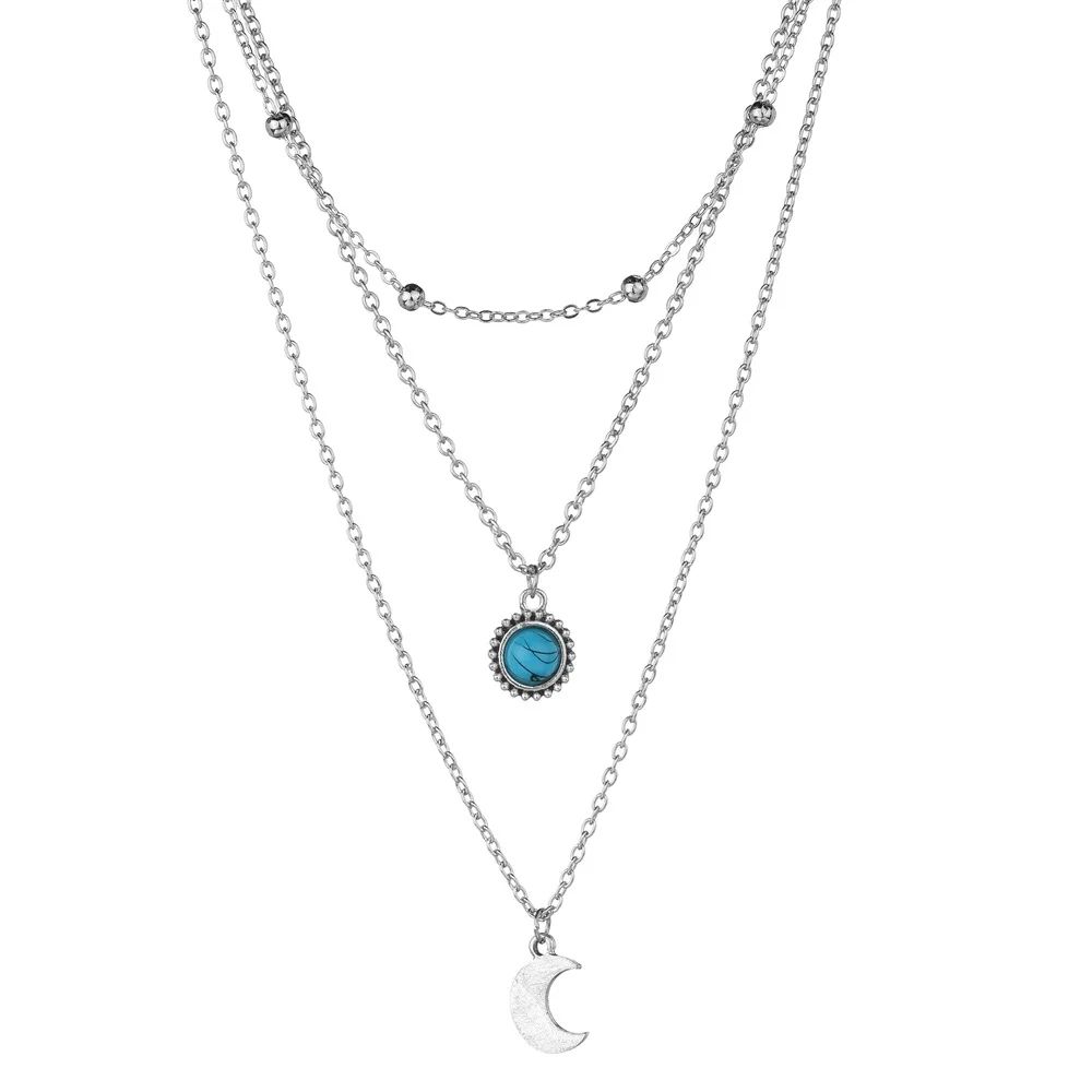 Подвеска трехслойная луна и голубой камень ожерелье кулон с луной