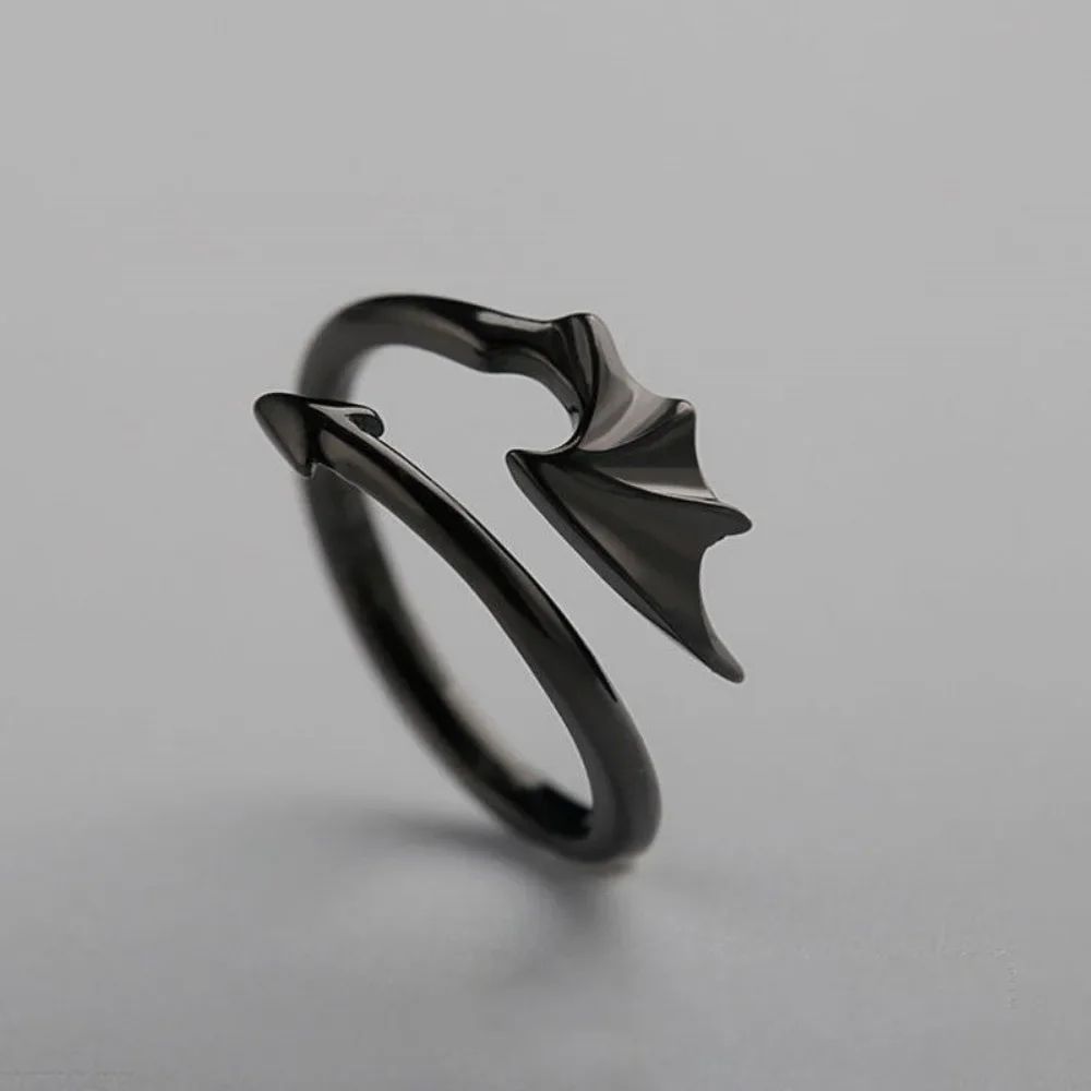 Кольцо магический дракон готический злой вампир перстень черные ангельские крылья