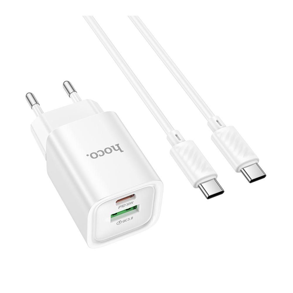 Сетевое Зарядное Устройство Hoco C149A 1USB/1USB-C PD/QC 30W+Type-C to Type-C Белый
