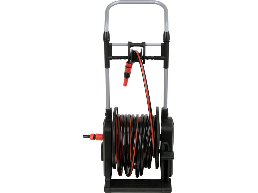 Функциональный, простой в использовании садовый набор, обеспечивающий порядок и комфорт при работе в доме. 25-метровый шланг, расположенный на крепкой тележке с большими колесами, обеспечивает мобильность и экономит место при хранении шланга.