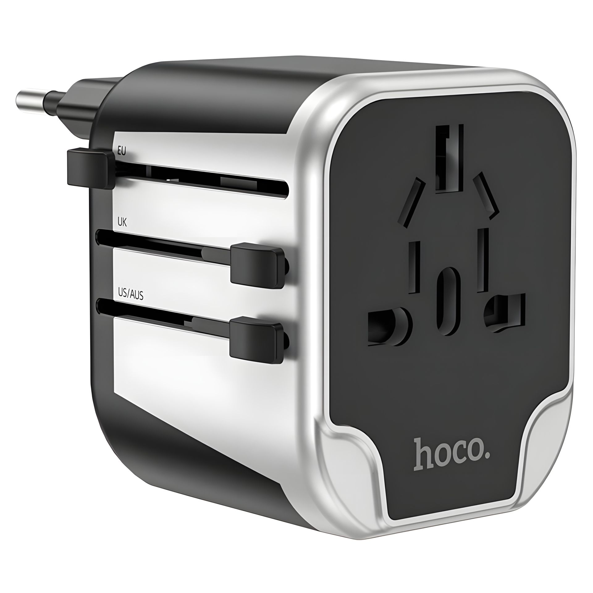 Универсальное сетевое зарядное устройство Hoco AC5 2 USB для EU, US, UK, AUS, серебристо-черное