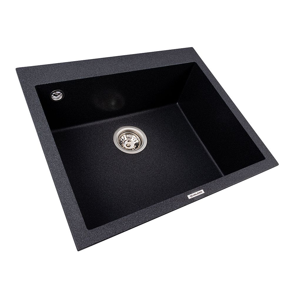 Кухонная гранитная мойка VALESO IRENA 6846 матовая в цвете Черный металлик